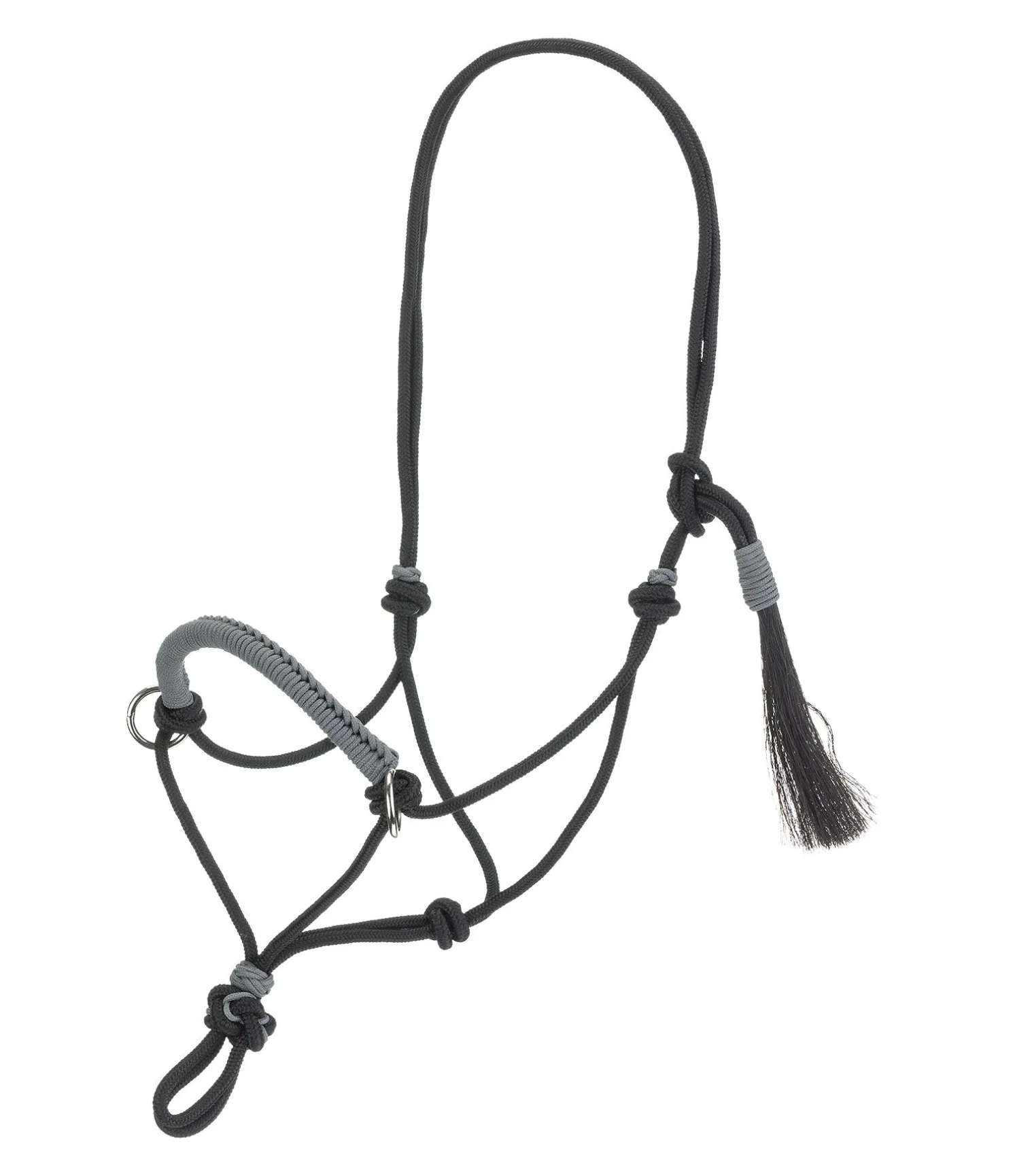 Magnifique licol à noeuds avec muserolle réglable. Idéal pour une communication précise avec le cheval. Muserolle renforcée et anneaux pour rênes. Épaisseur de la corde 6 mm. Avec pompon. 100 % polypropylène.