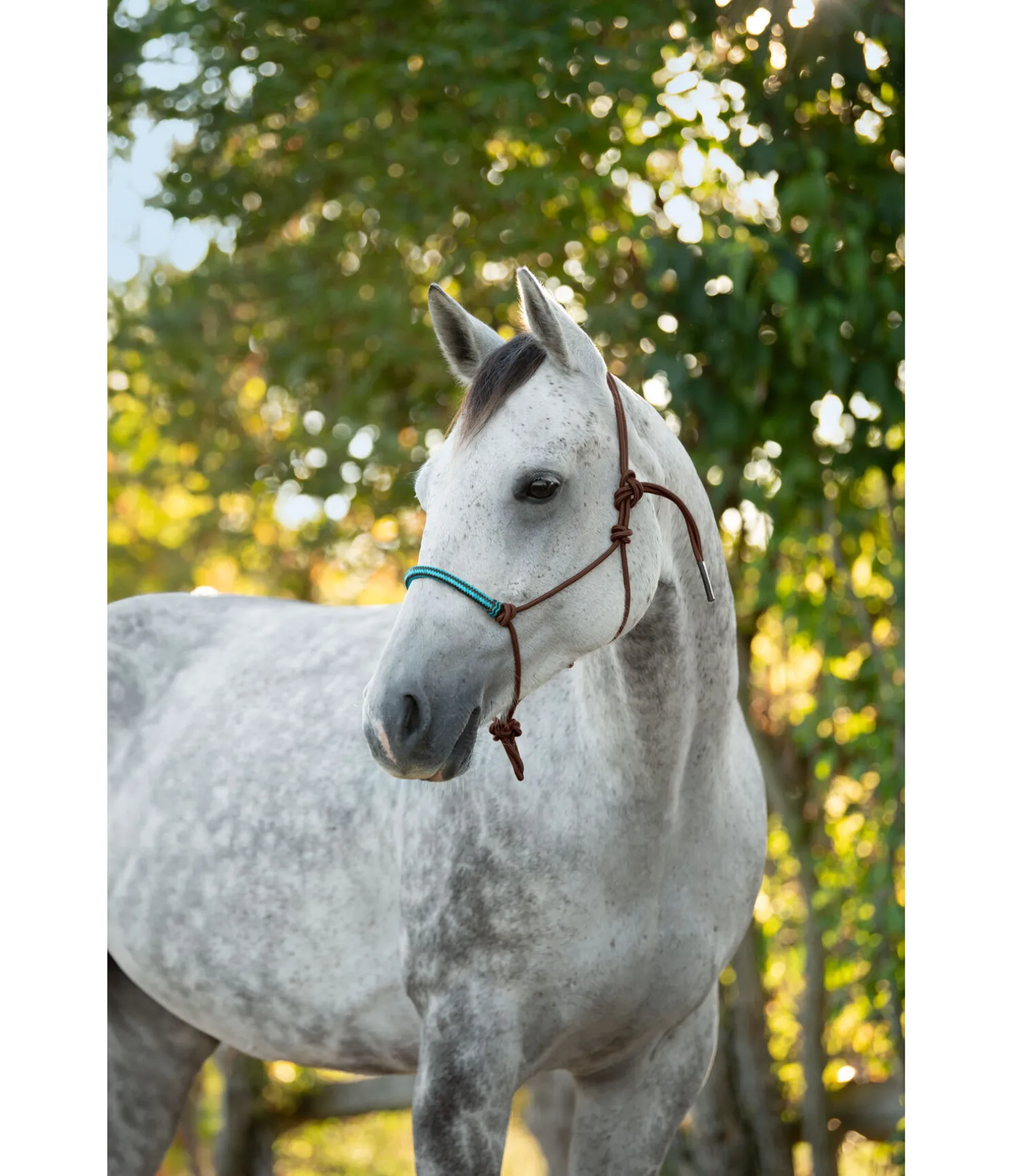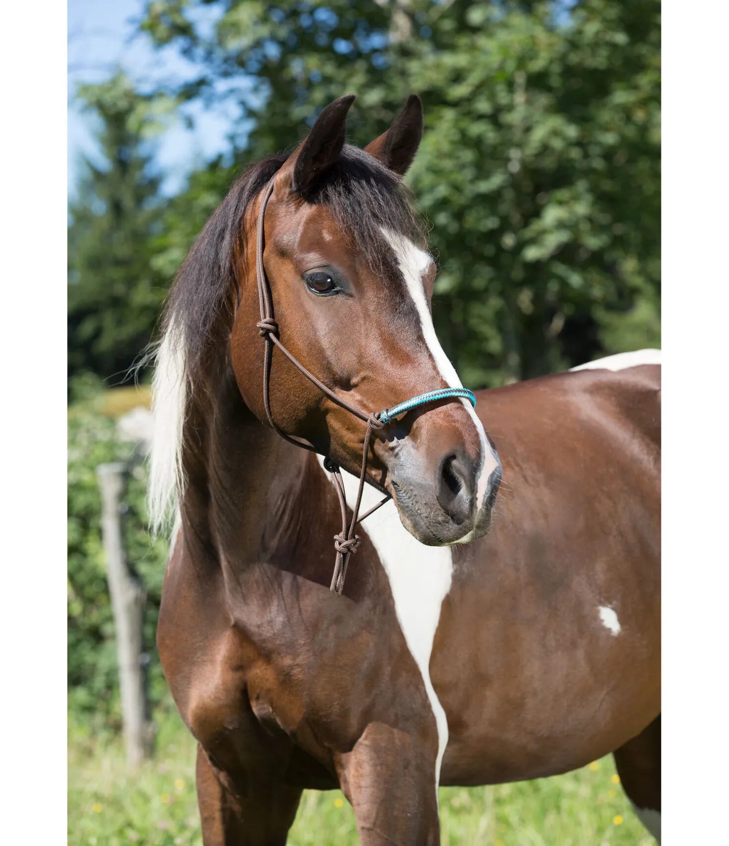 Licol à noeuds haut de gamme. Avec muserolle de couleur contrastante en cuir brut. Diamètre 6 mm.