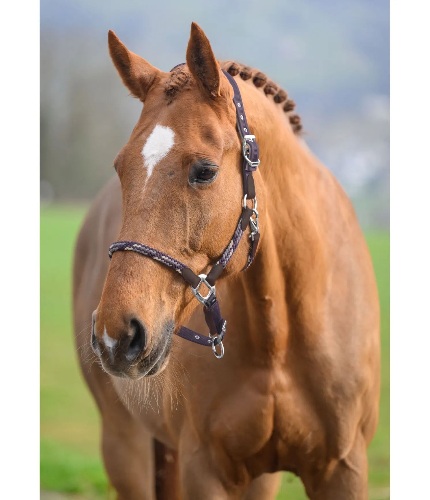 Élégant licol avec large têtière anatomique. Doublure douce en caoutchouc chloroprène. Muserolle, sous-gorge et montants en corde souple tressée pour une action directe mais douce. Têtière doublement réglable, muserolle réglable. Bouclerie résistante de qualité supérieure. 100 % polypropylène.