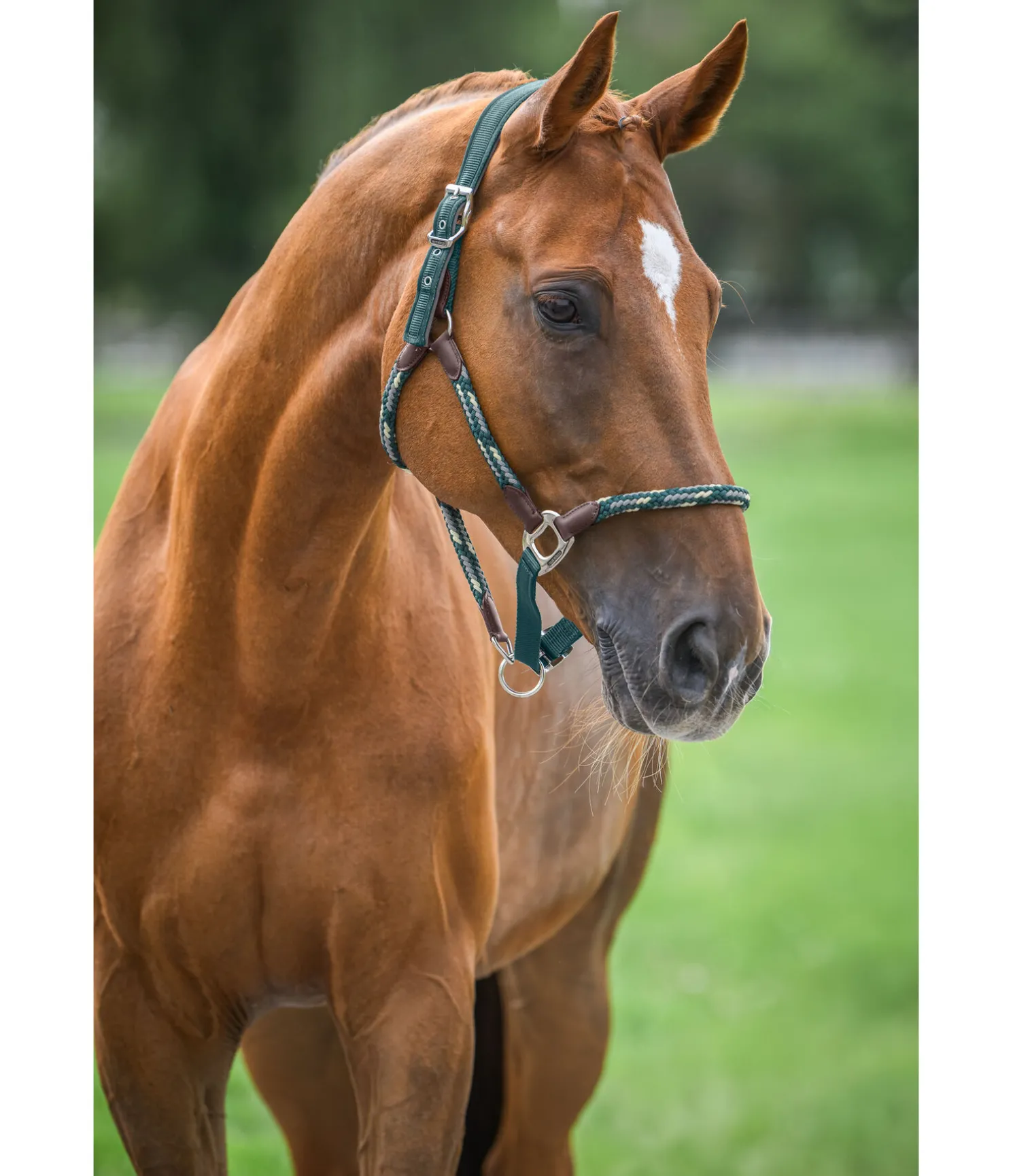 Élégant licol avec large têtière anatomique. Doublure douce en caoutchouc chloroprène. Muserolle, sous-gorge et montants en corde souple tressée pour une action directe mais douce. Têtière doublement réglable, muserolle réglable. Bouclerie résistante de qualité supérieure. 100 % polypropylène.