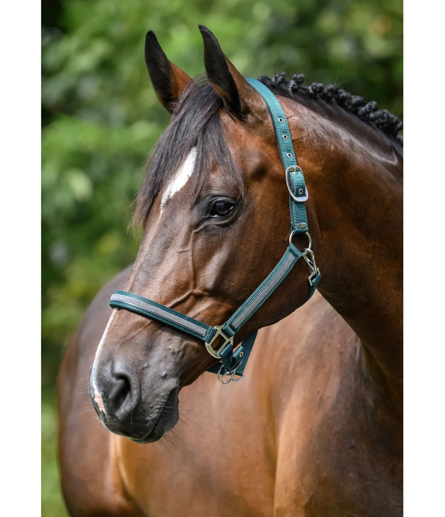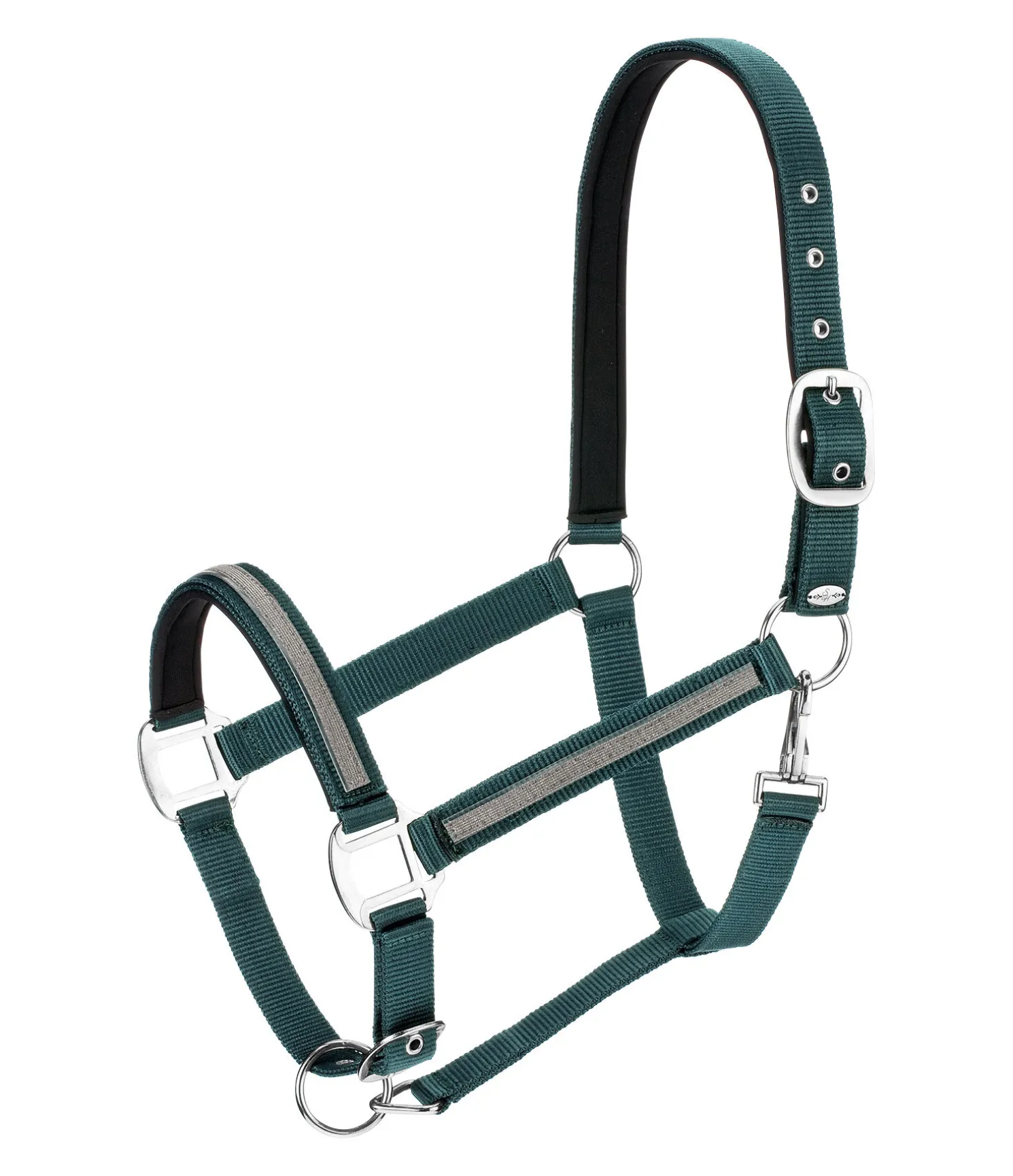 Licol tendance avec bande scintillante cousue. Têtière et muserolle avec doublure douce en caoutchouc chloroprène. Têtière et muserolle réglables. 100 % polypropylène.