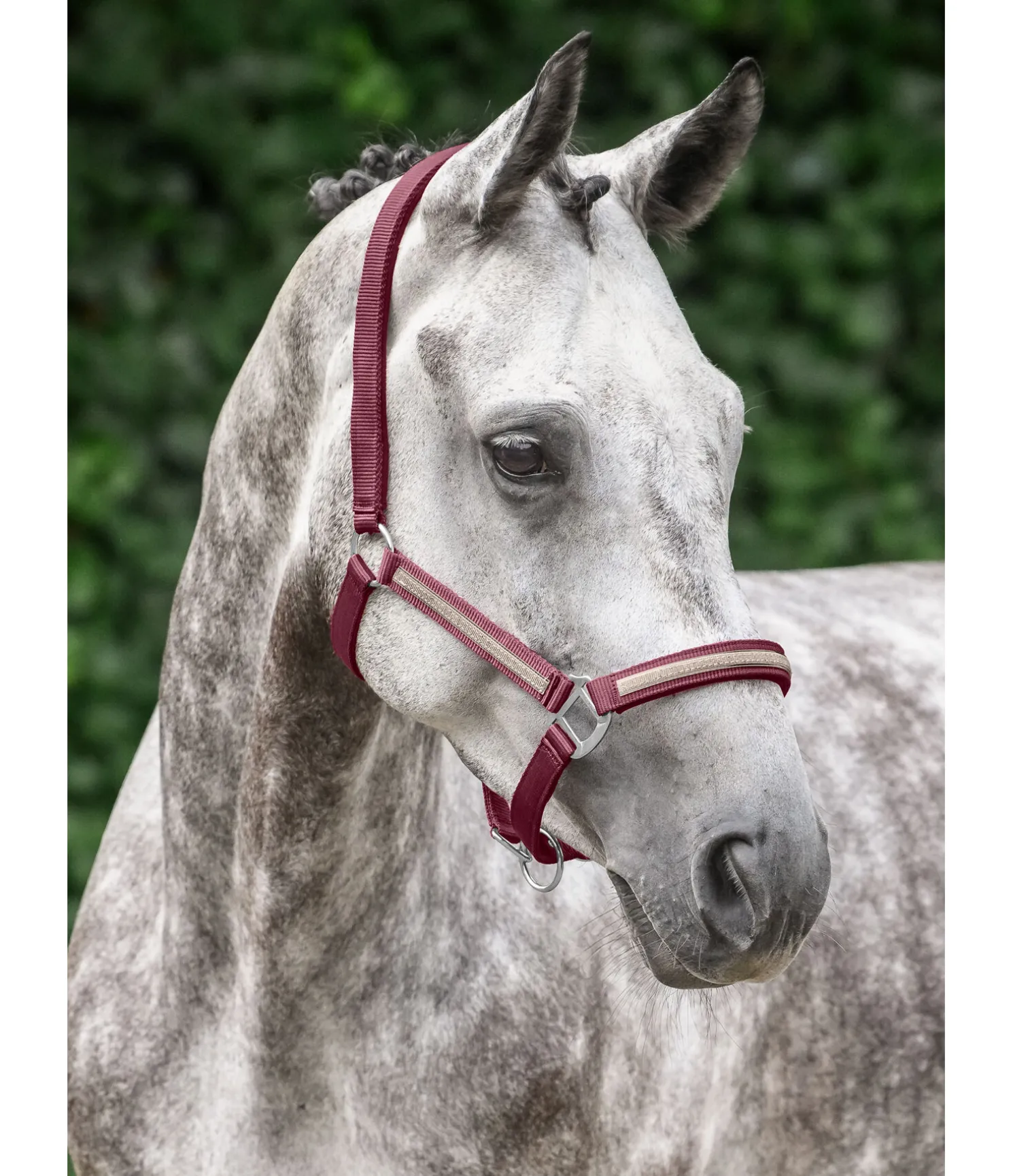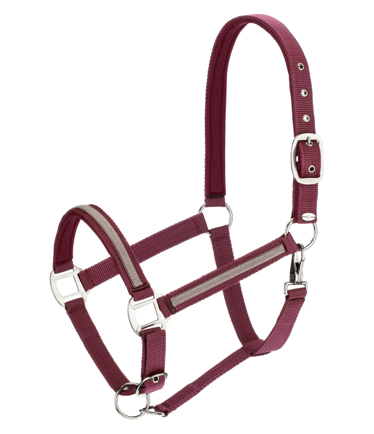 Licol tendance avec bande scintillante cousue. Têtière et muserolle avec doublure douce en caoutchouc chloroprène. Têtière et muserolle réglables. 100 % polypropylène.