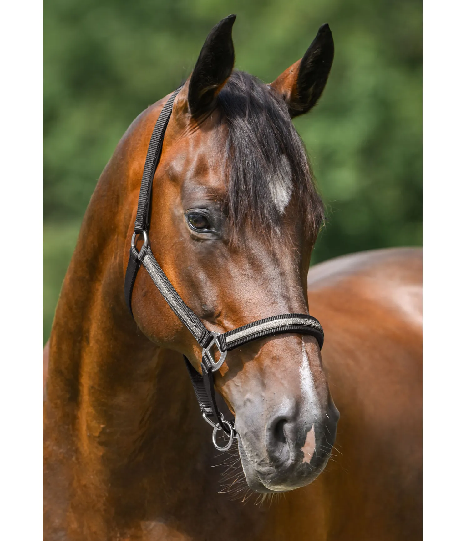 Licol tendance avec bande scintillante cousue. Têtière et muserolle avec doublure douce en caoutchouc chloroprène. Têtière et muserolle réglables. 100 % polypropylène.