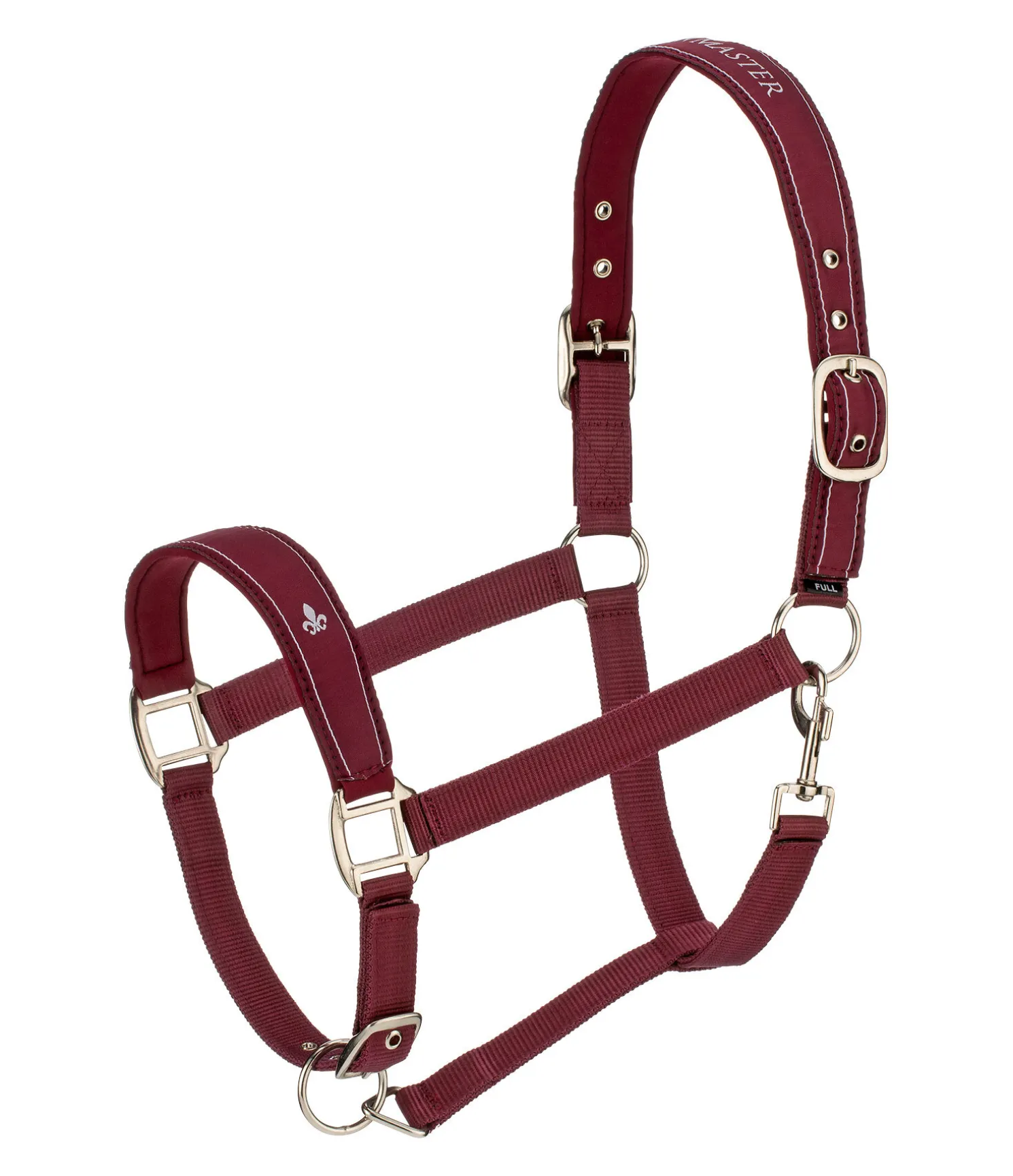 Licol sportif avec têtière et muserolle doublées de caoutchouc chloroprène doux. Lys blancs sur la muserolle. Têtière et muserolle réglables. Bouclerie argentée. Licol 100 % polypropylène.