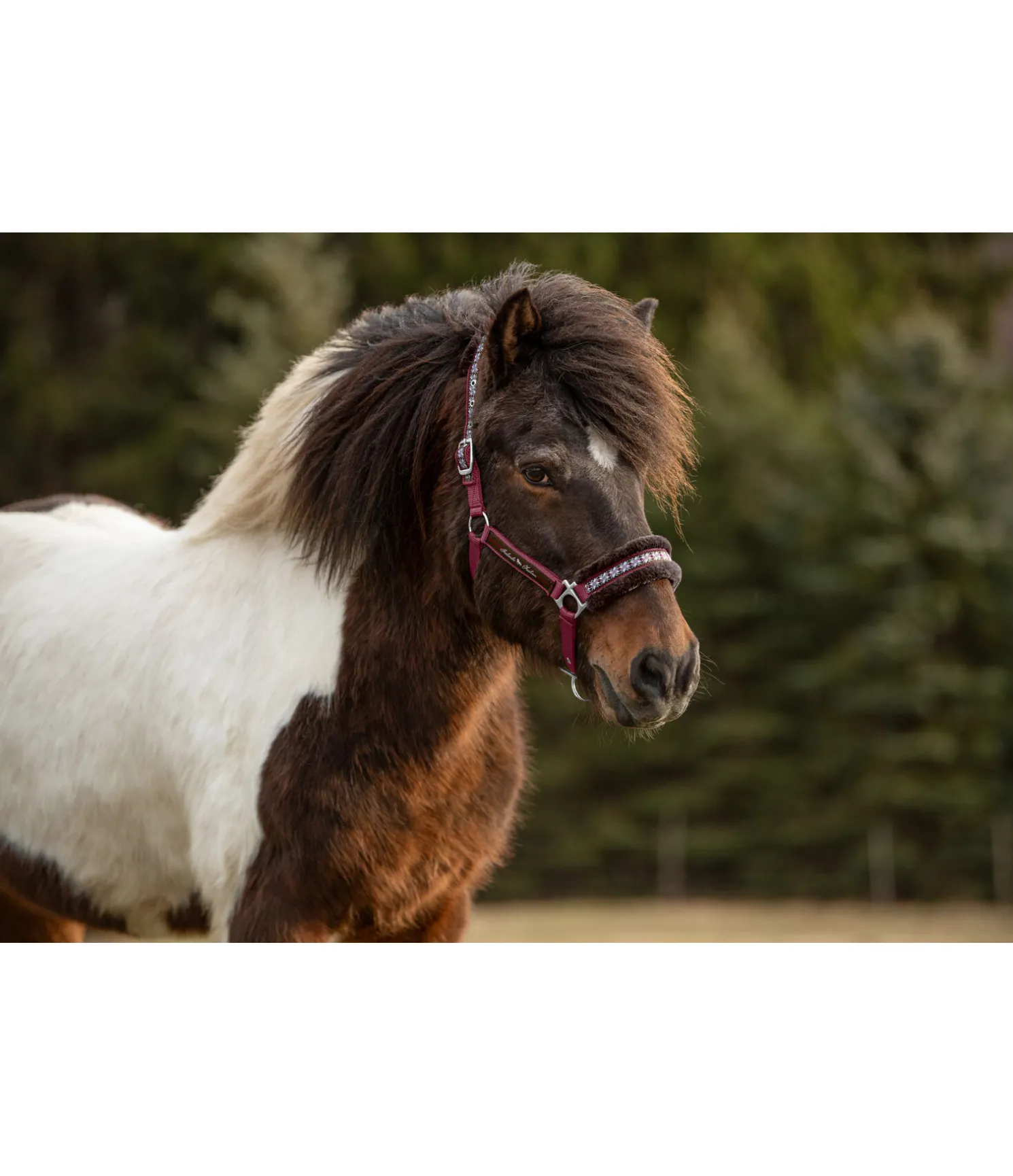Licol en polaire Teddy au look nordique. Taille réglable de chaque côté au niveau de la têtière et facilement ajustable au niveau de la muserolle. 100 % polyester.