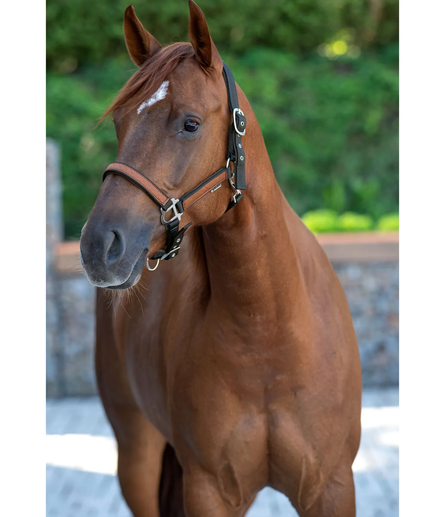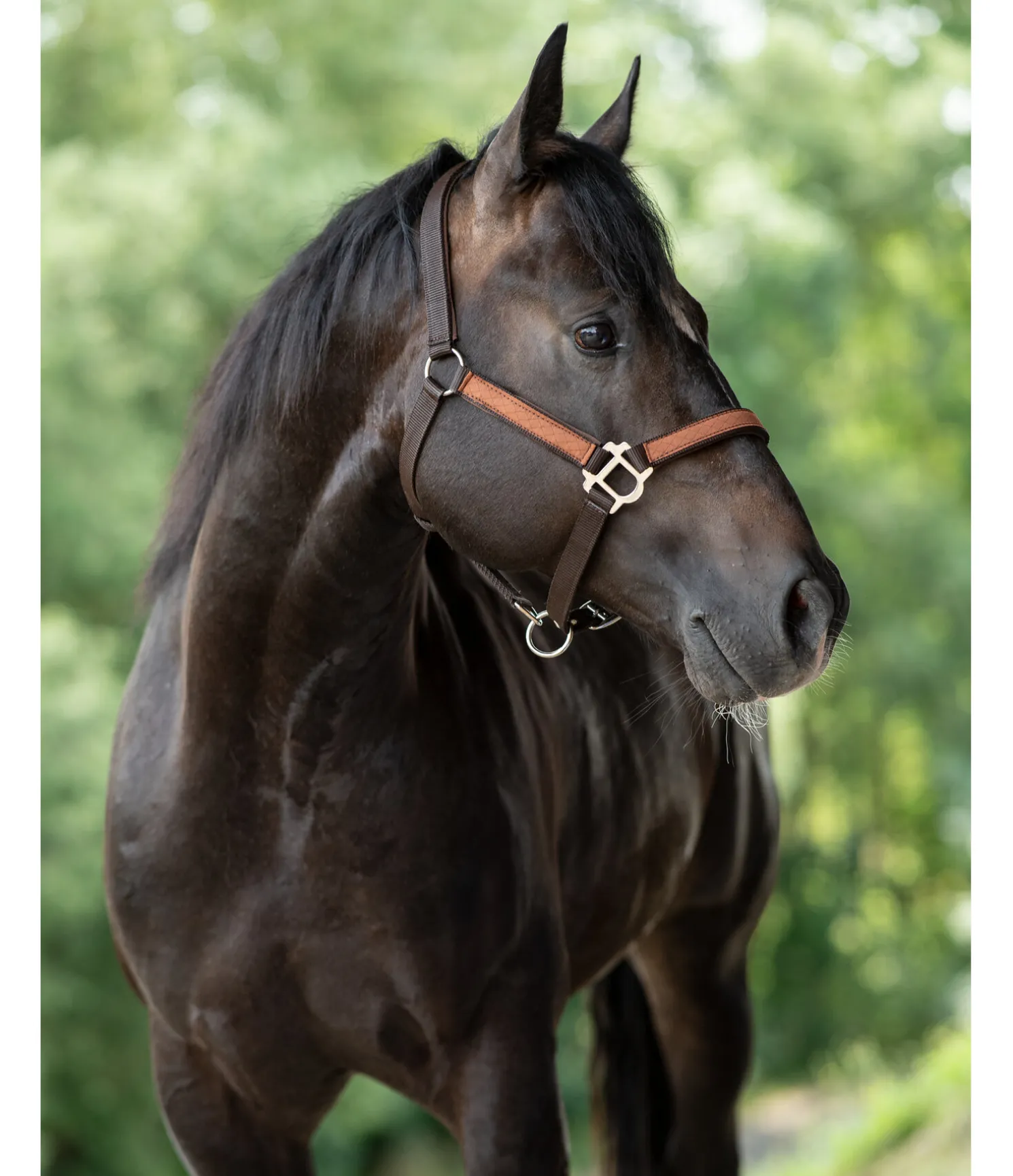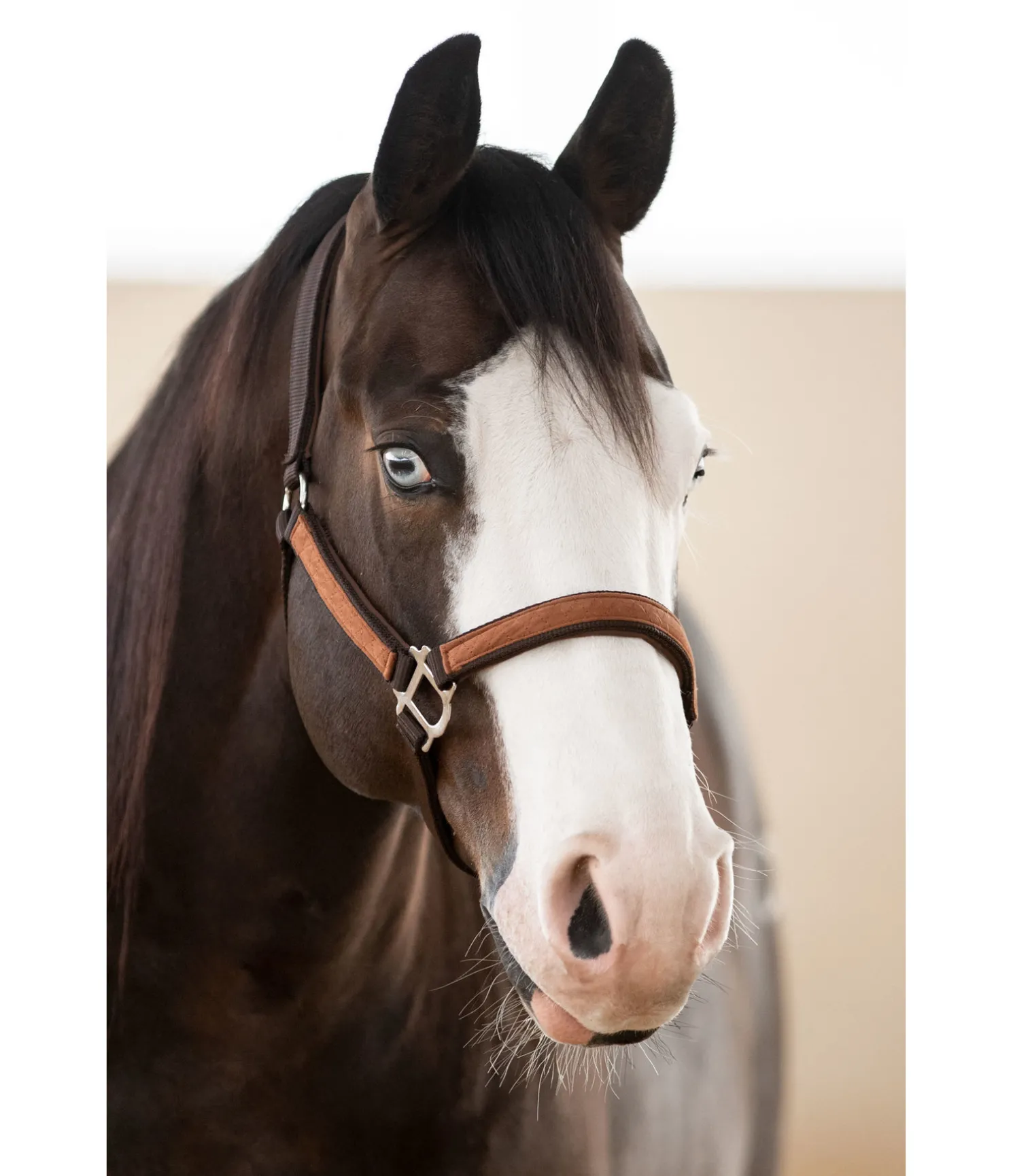 Licol chic dans un look western avec montants et muserolle ornés de suédine. Têtière, montants et muserolle avec doublure moelleuse en caoutchouc chloroprène. Têtière et muserolle réglables. Mousquetons clippers. Boucles argentées. Licol 50 % polypropylène, 50 % polyester, doublure 100 % caoutchouc chloroprène.