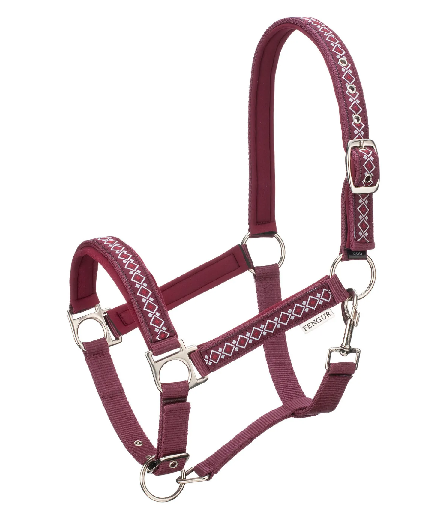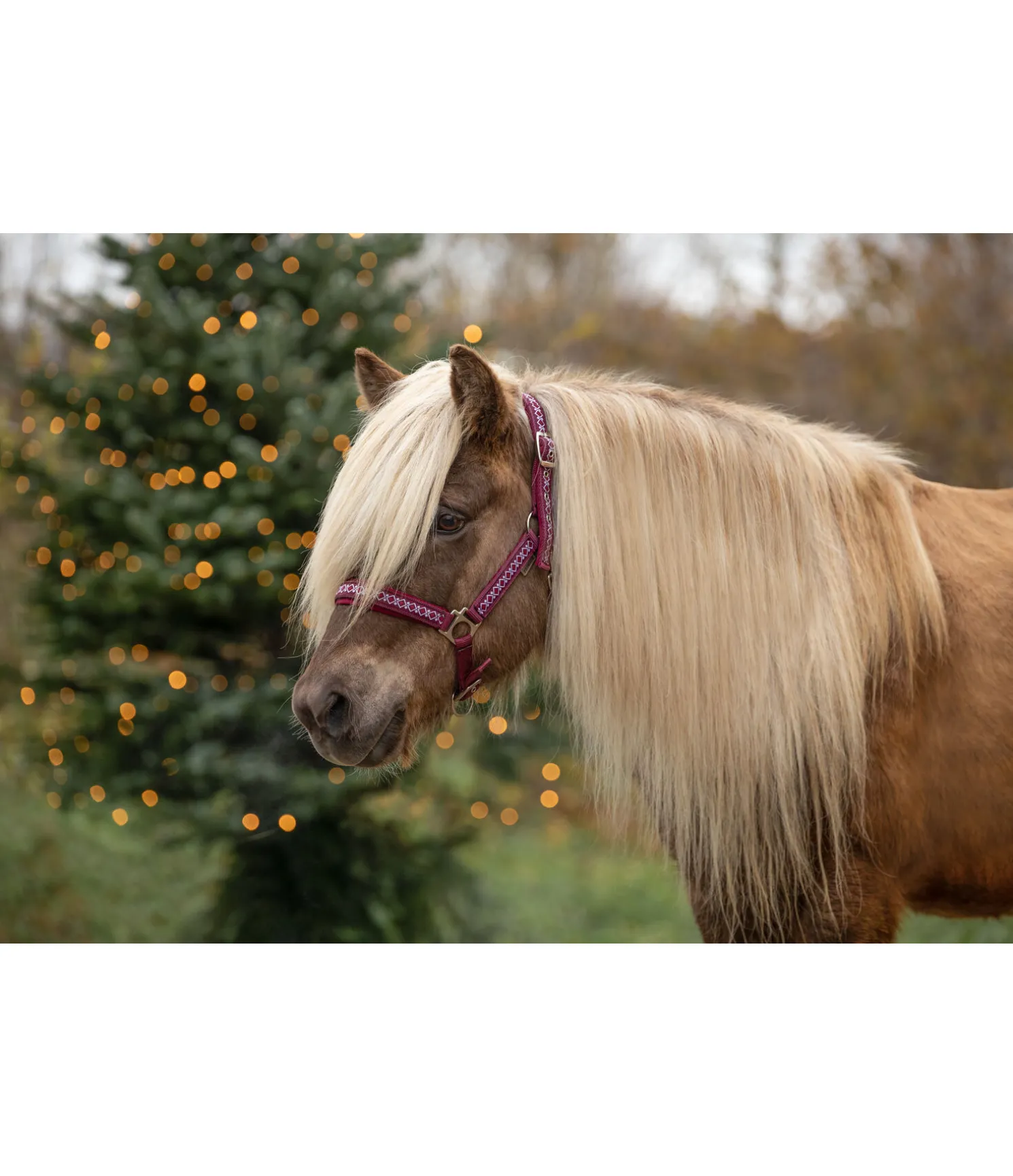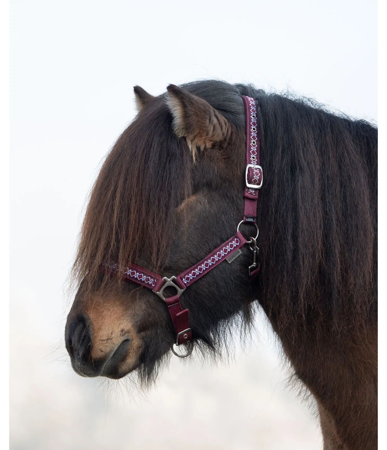 Licol avec motif nordique, pas uniquement réservé aux poneys islandais. Têtière, montants et muserolle avec doublure moelleuse. Têtière et muserolle réglables. Licol 100 % polypropylène, doublure 100 % polyester