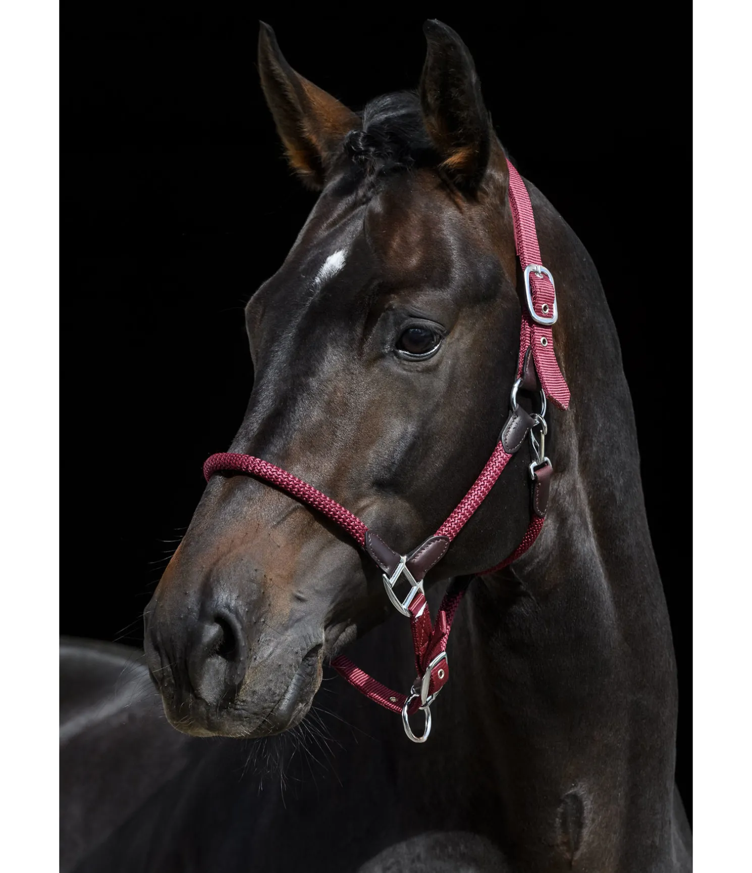 Licol exceptionnel avec corde tressée et extrêmités en cuir, qui lui confèrent un look particulièrement soigné. Assorti à la longe Kate (440 543 et 440 686). Muserolle et têtière réglables. Bouclerie argentée. Licol 100 % polypropylène, doublure 100 % caoutchouc chloroprène.