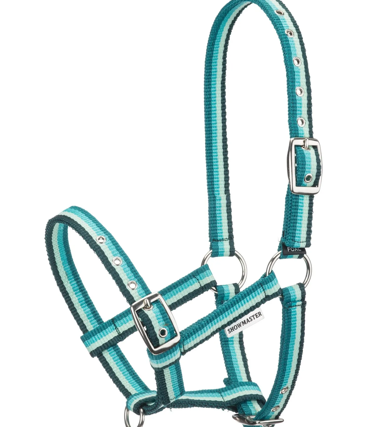 Licol pour poulains aux rayures colorées, idéal pour les poulains en croissance grâce à la têtière, muserolle et sous-gorge réglables. Bouclerie argentée en GL et NB et dorée en CO. 100 % polypropylène.