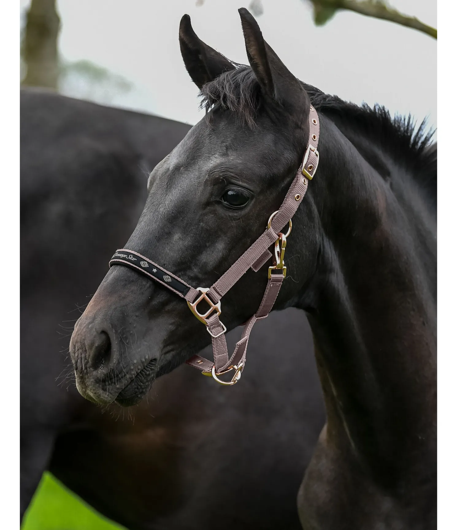 Licol pour les futurs champions de CSO ou de dressage avec broderie scintillante et éléments décoratifs de couleur contrastante sur la muserolle : « Future Jumping Star » en couleur MR et « Future Dressage Star » en couleur WA. Têtière, sous-gorge et muserolle réglables. Avec mousqueton. Broderie et bouclerie rose doré. 100 % polypropylène.