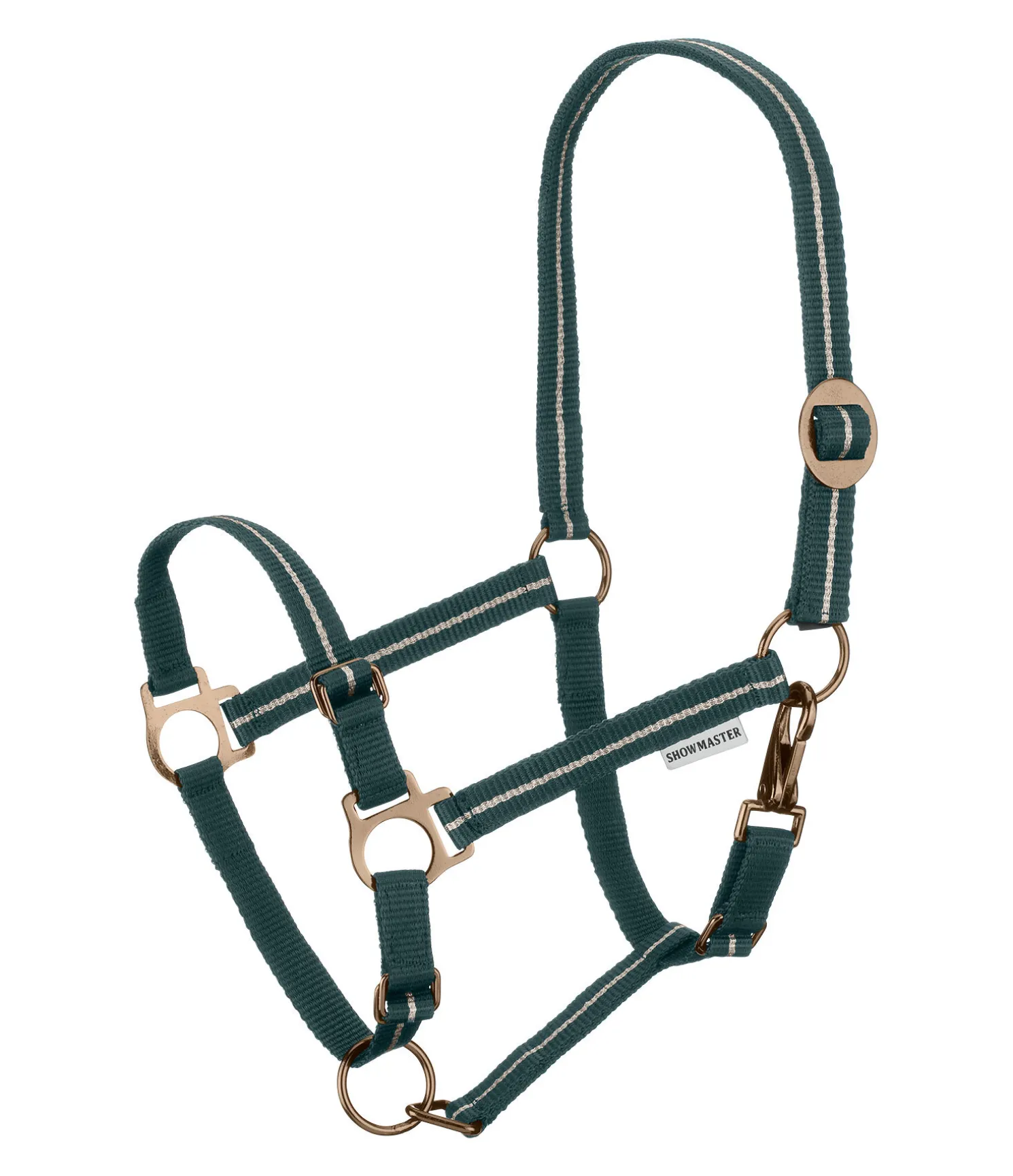 Licol tendance avec fil métallisé scintillant et bouclerie assortie. Têtière, muserolle et sous-gorge réglables en continu. 100 % polypropylène.