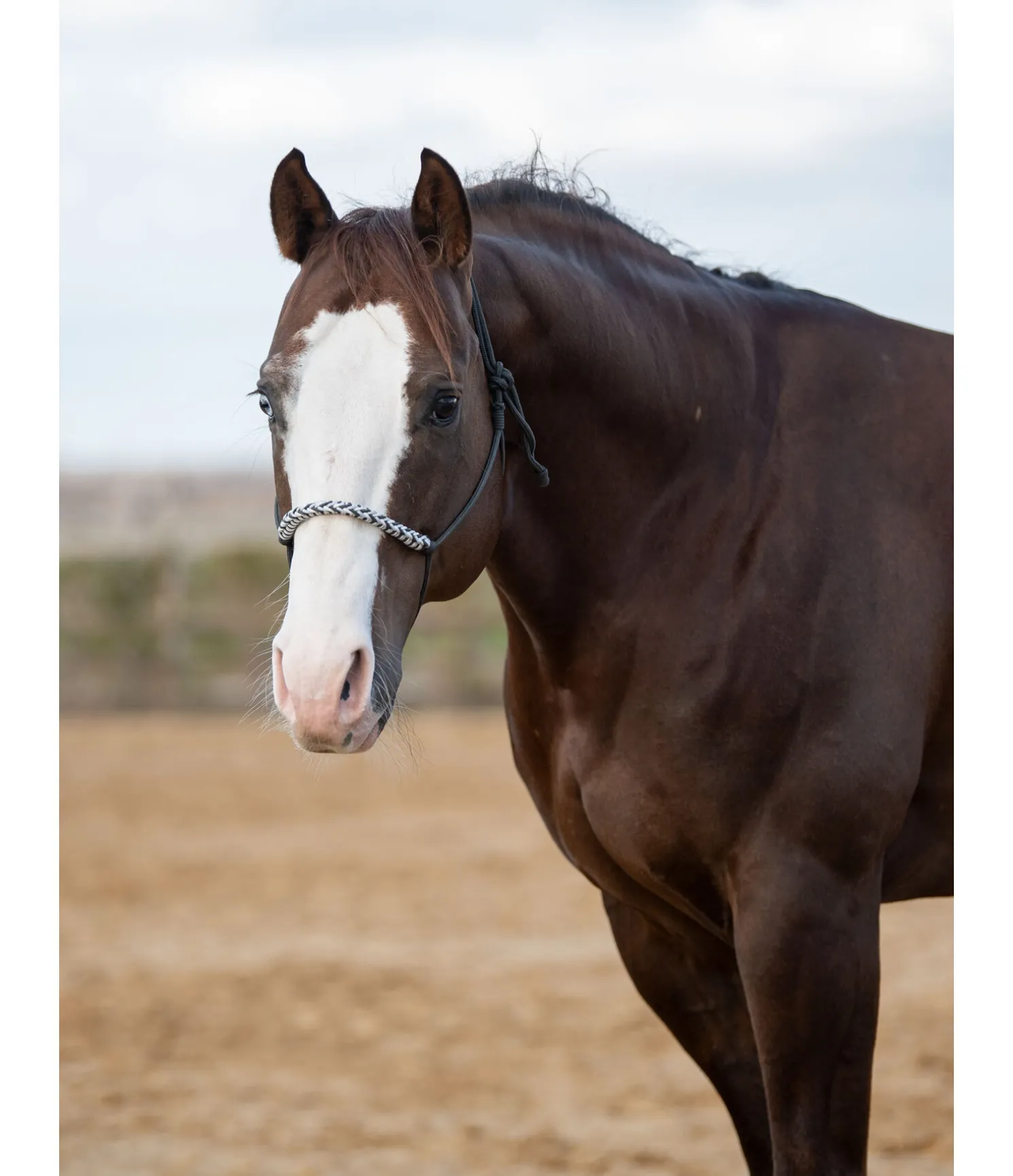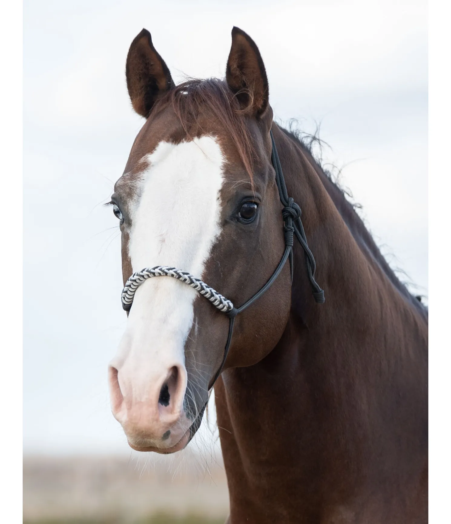 Licol en corde. Anneau coulissant. Sans noeuds. Ne glisse pas en cas de traction latérale, pour une communication précise avec le cheval. Muserolle renforcée. Épaisseur de la corde 6 mm. 100 % polypropylène.