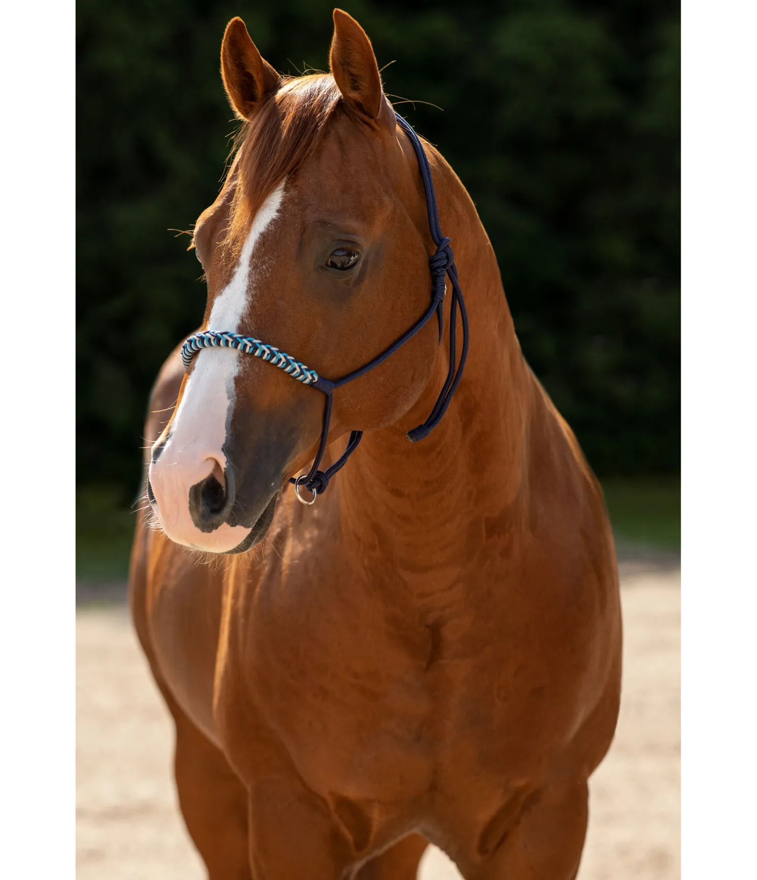 Licol en corde. Anneau coulissant. Sans noeuds. Ne glisse pas en cas de traction latérale, pour une communication précise avec le cheval. Muserolle renforcée. Épaisseur de la corde 6 mm. 100 % polypropylène.