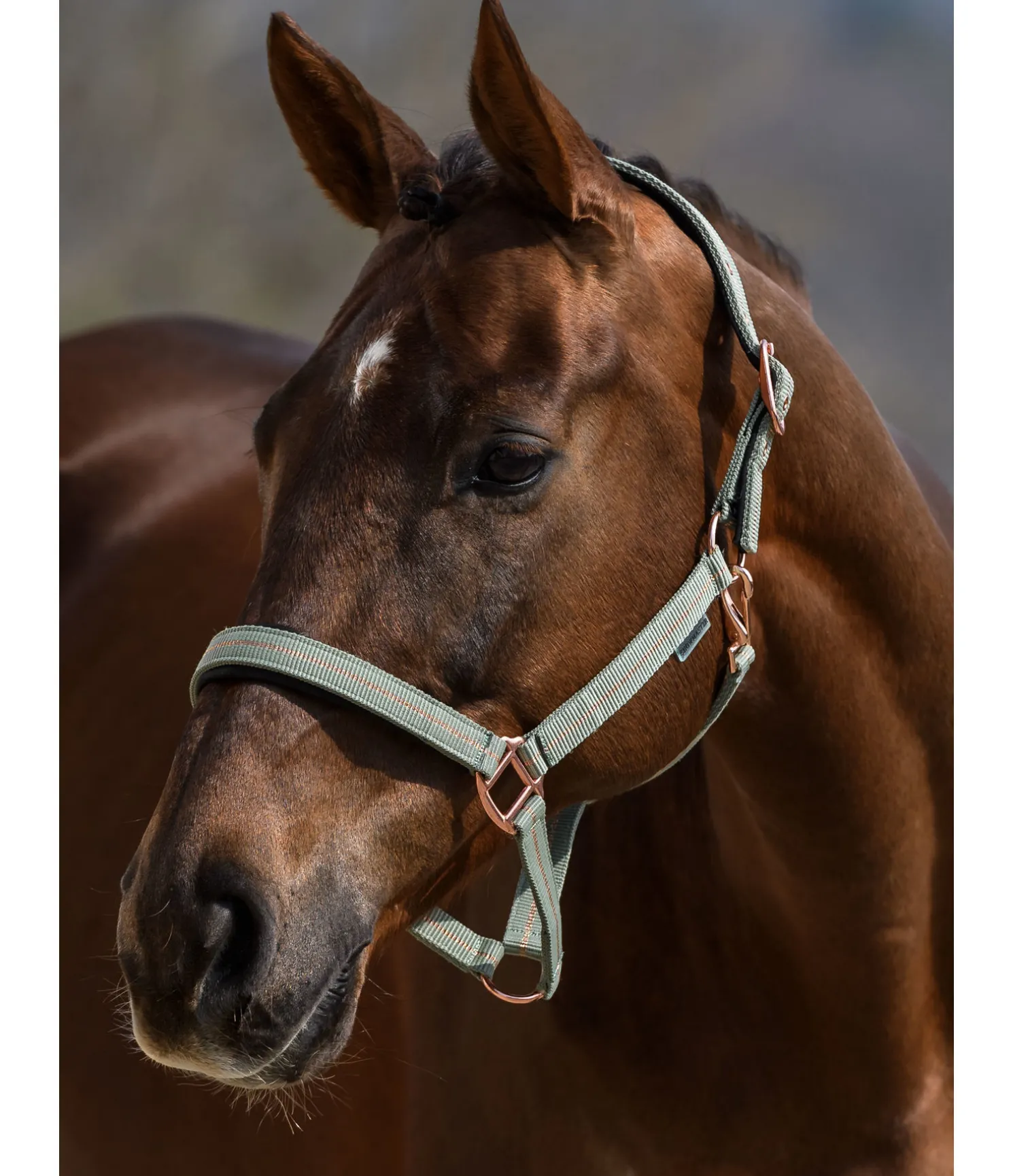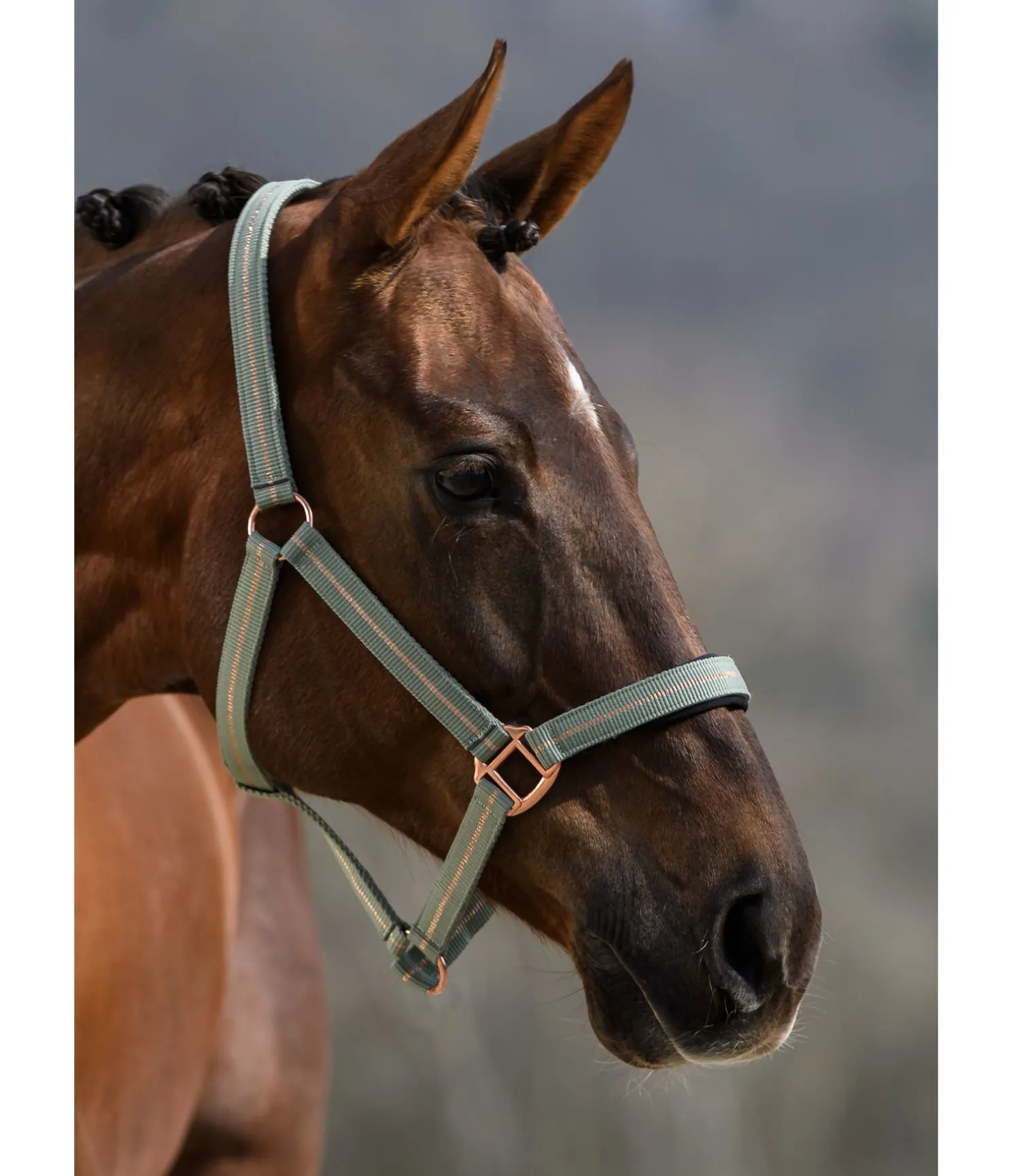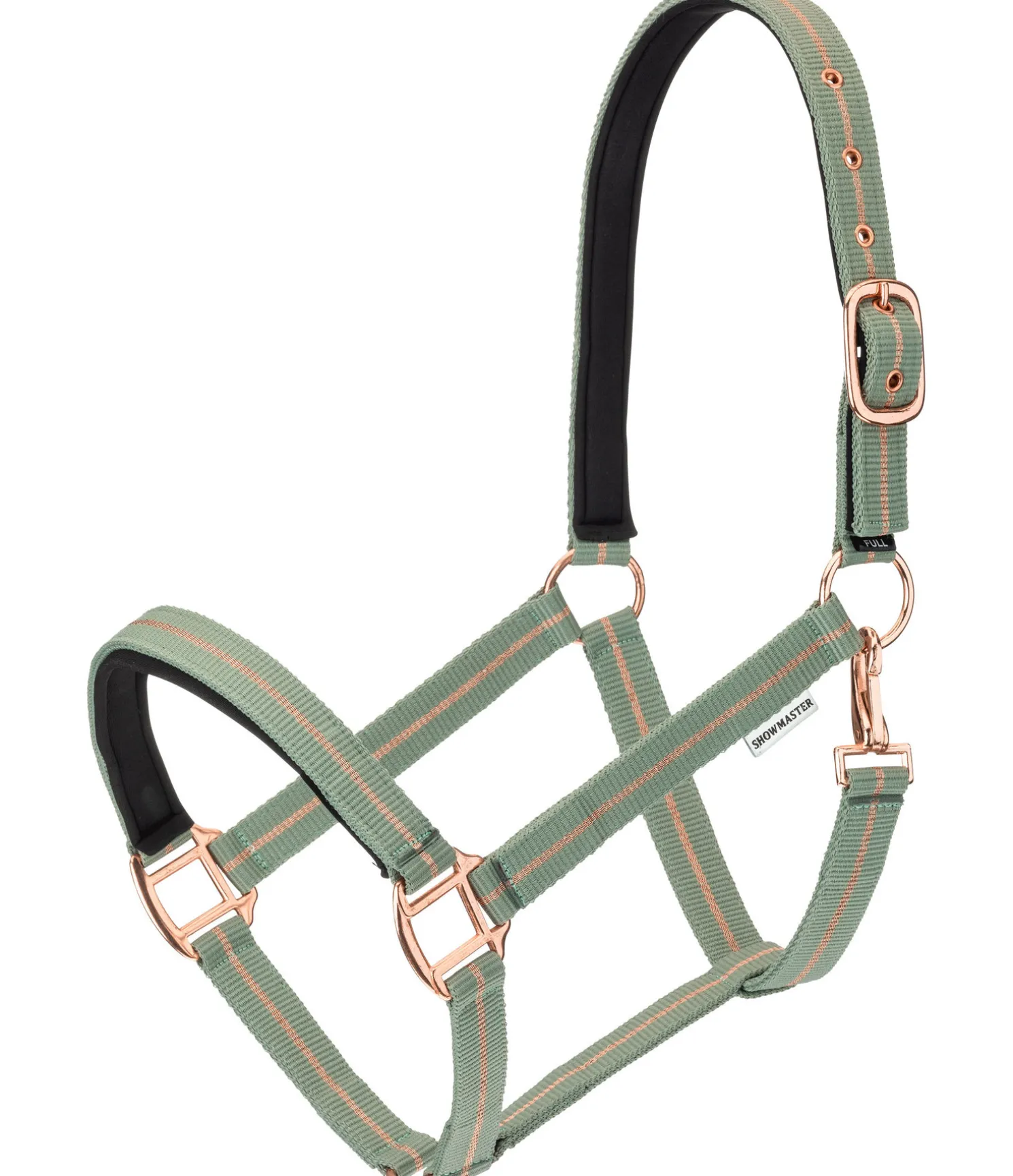 Licol tendance avec rayure en fil métallisé scintillant et bouclerie assortie. Têtière et muserolle avec doublure moelleuse en caoutchouc chloroprène. Têtière facile à réglable. 100 % polypropylène.