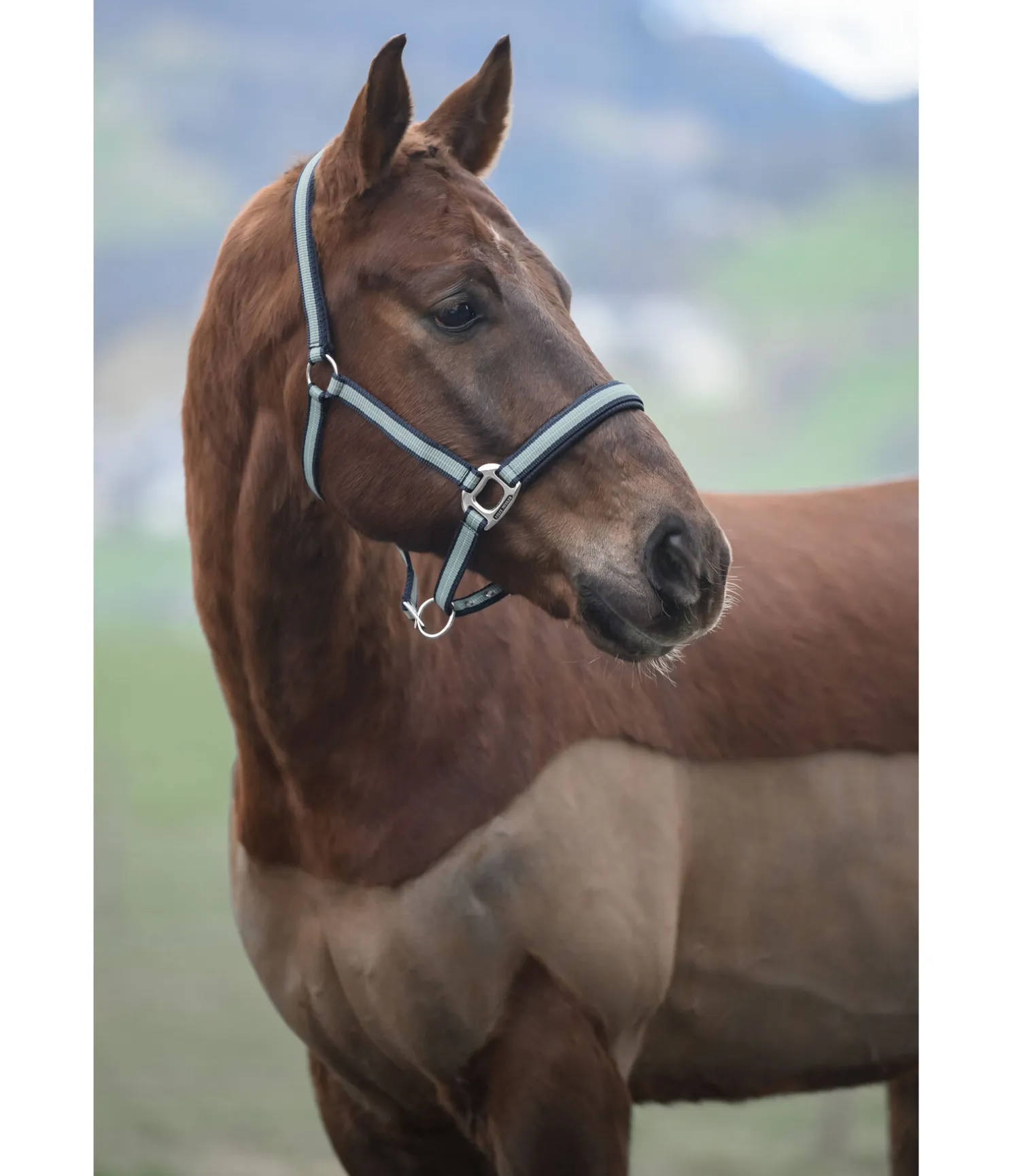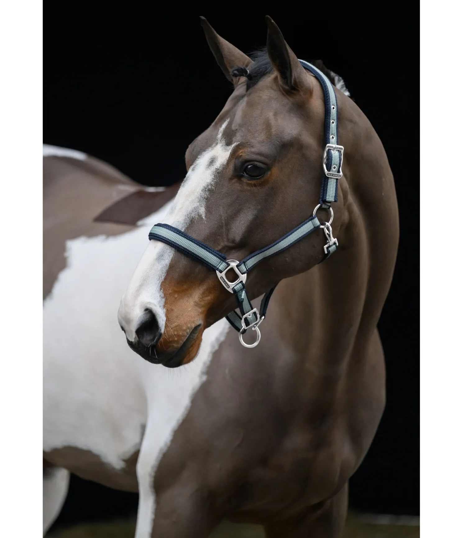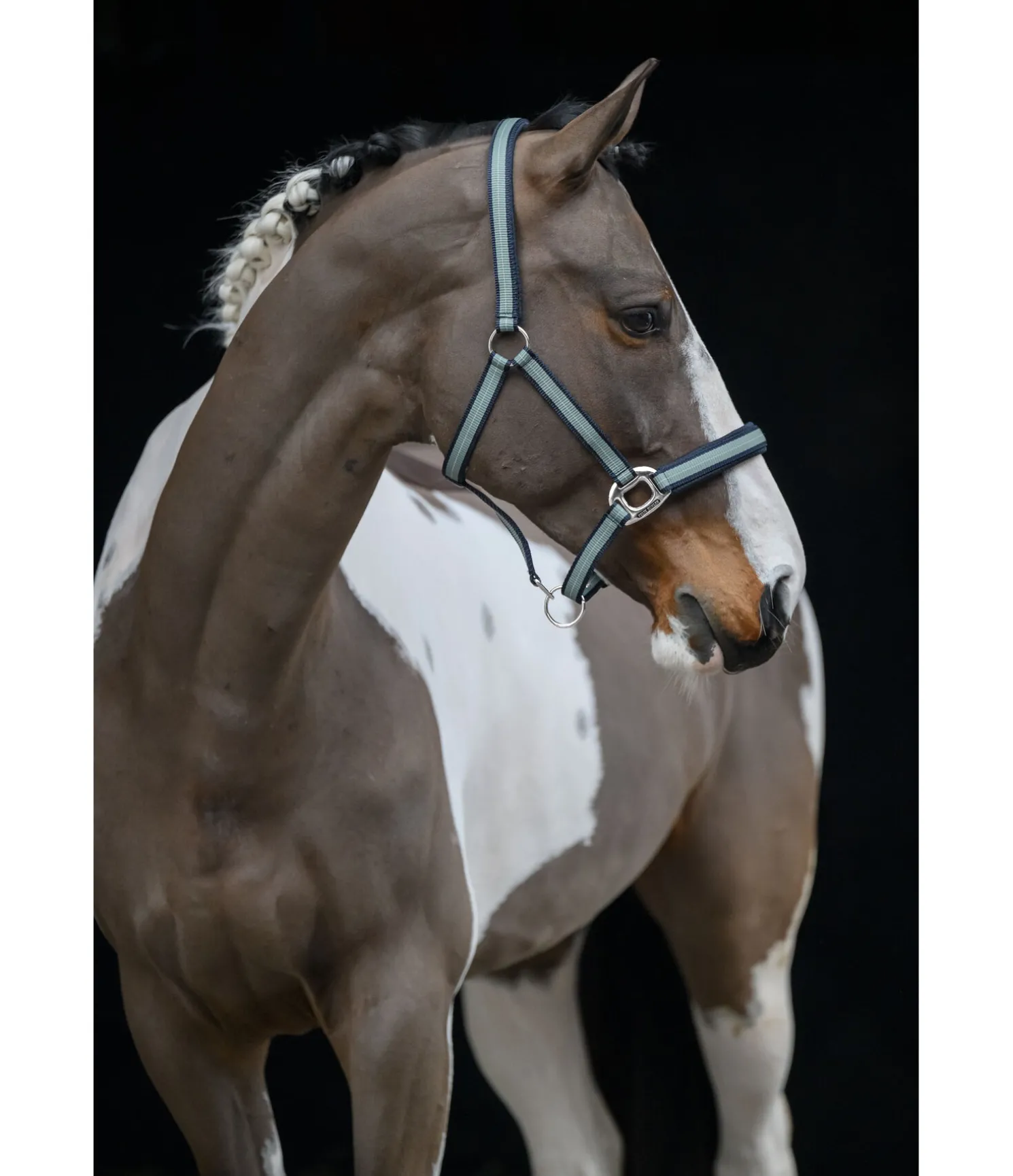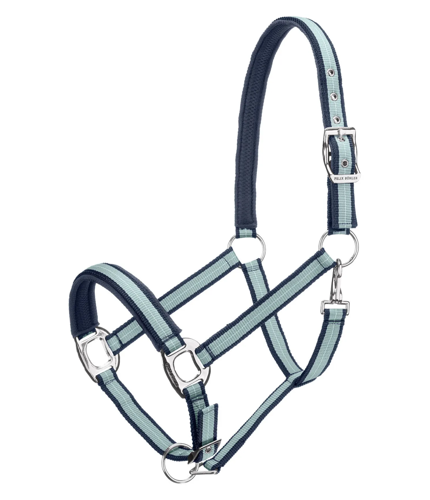 Licol rayé dans un look sportif avec doublure respirante en mesh sur la têtière et la muserolle. Muserolle et têtière réglables. Licol 100 % polypropylène.