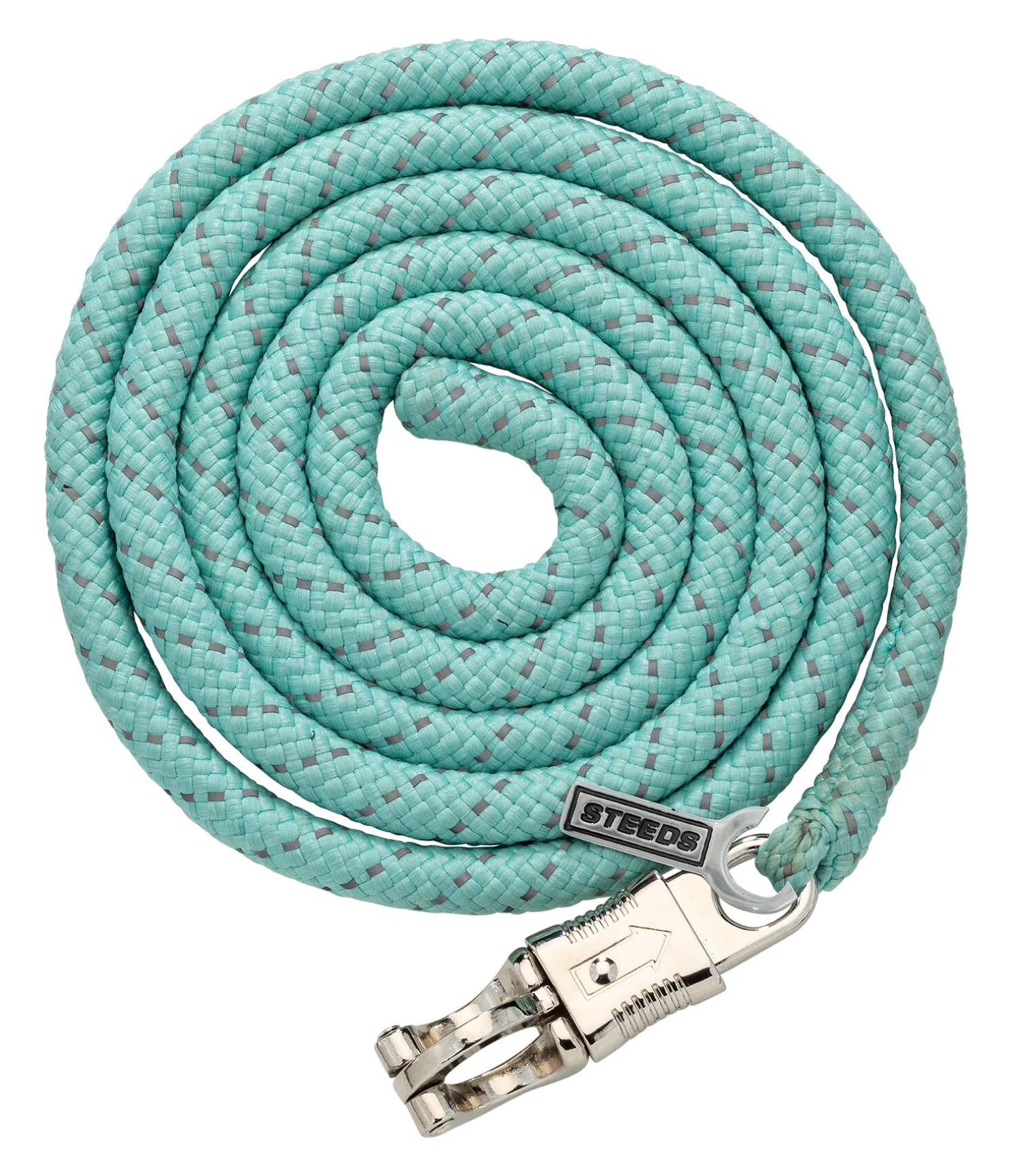 Longe avec fil réfléchissant pour plus de sécurité dans l’obscurité. Mousqueton anti-panique argenté. Assortie au licol réfléchissant STEEDS Shiny 340 192. 2 m. 100 % polyester.
