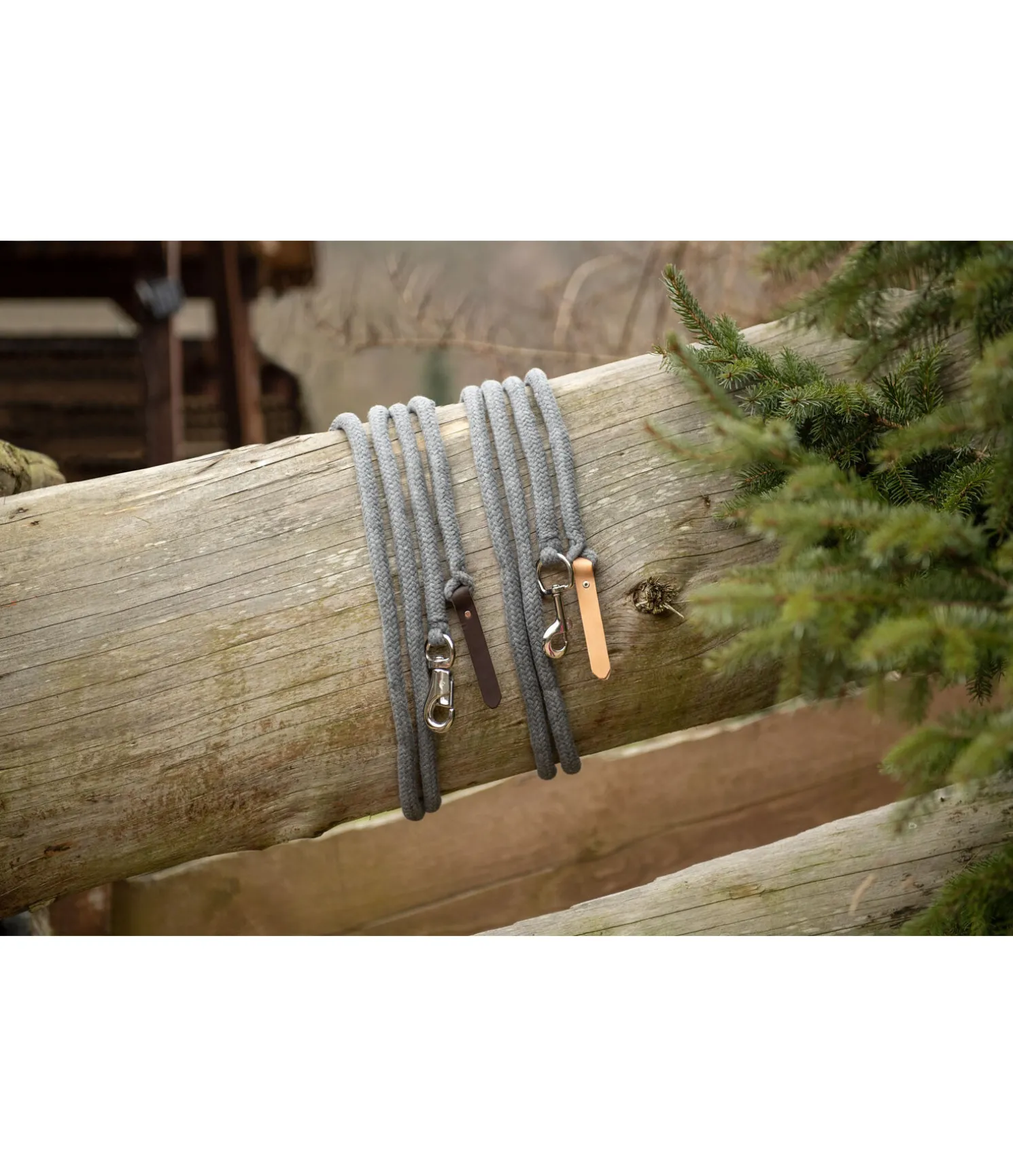 Très résistante grâce à l’épais coeur en polyester. Gaine en coton naturel anti-dérapant. Grâce au poids du bullsnap en laiton, qui peut s’ouvrir vers l’extérieur, les indications transmises au cheval sont encore plus claires. Avec embout en cuir. Disponible en 4 m.