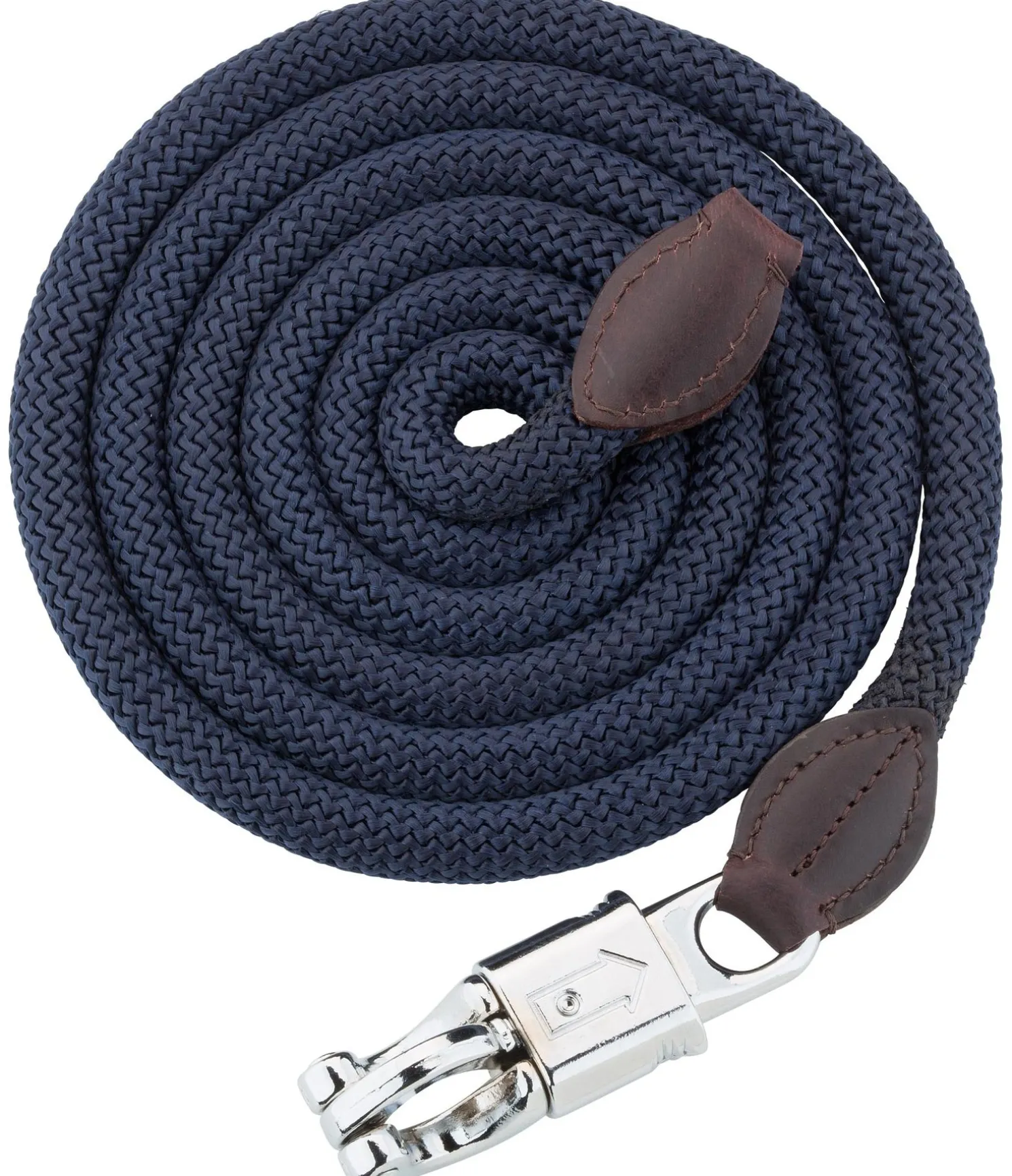 Longe ronde agréable et souple avec extrémités en cuir pour un look particulièrement soigné. Assortie au licol Kate (réf.: 440 499) et Meghan (réf.: 440 685). Avec mousqueton anti-panique argenté. 2 m. 100 % polypropylène.