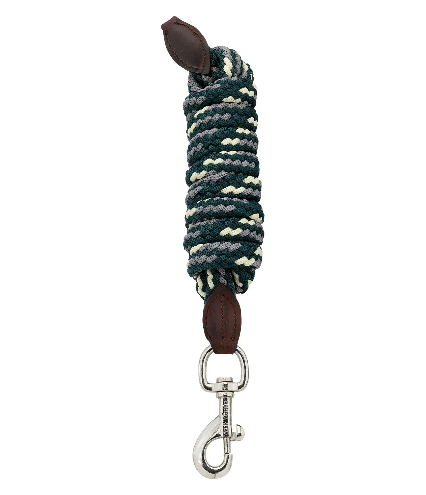 Longe tressée ronde très résistante avec élégants embouts en cuir et mousqueton. Assortie au licol 310040. Bouclerie argentée. 2 m. 100 % polypropylène.