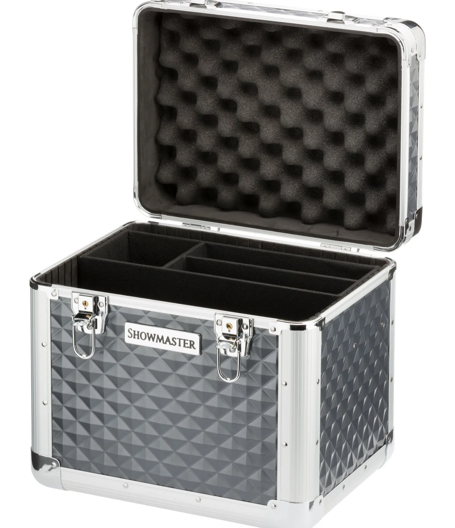 Malette de pansage de grande qualité avec cadre résistant en aluminium. Surface structurée à motifs diamants, dans un look métallisé tendance. Intérieur totalement rembourré, avec séparation au milieu et petit compartiment amovible. Avec poignée encastrée. Verrouillable. 34 x 28 x 32 cm.