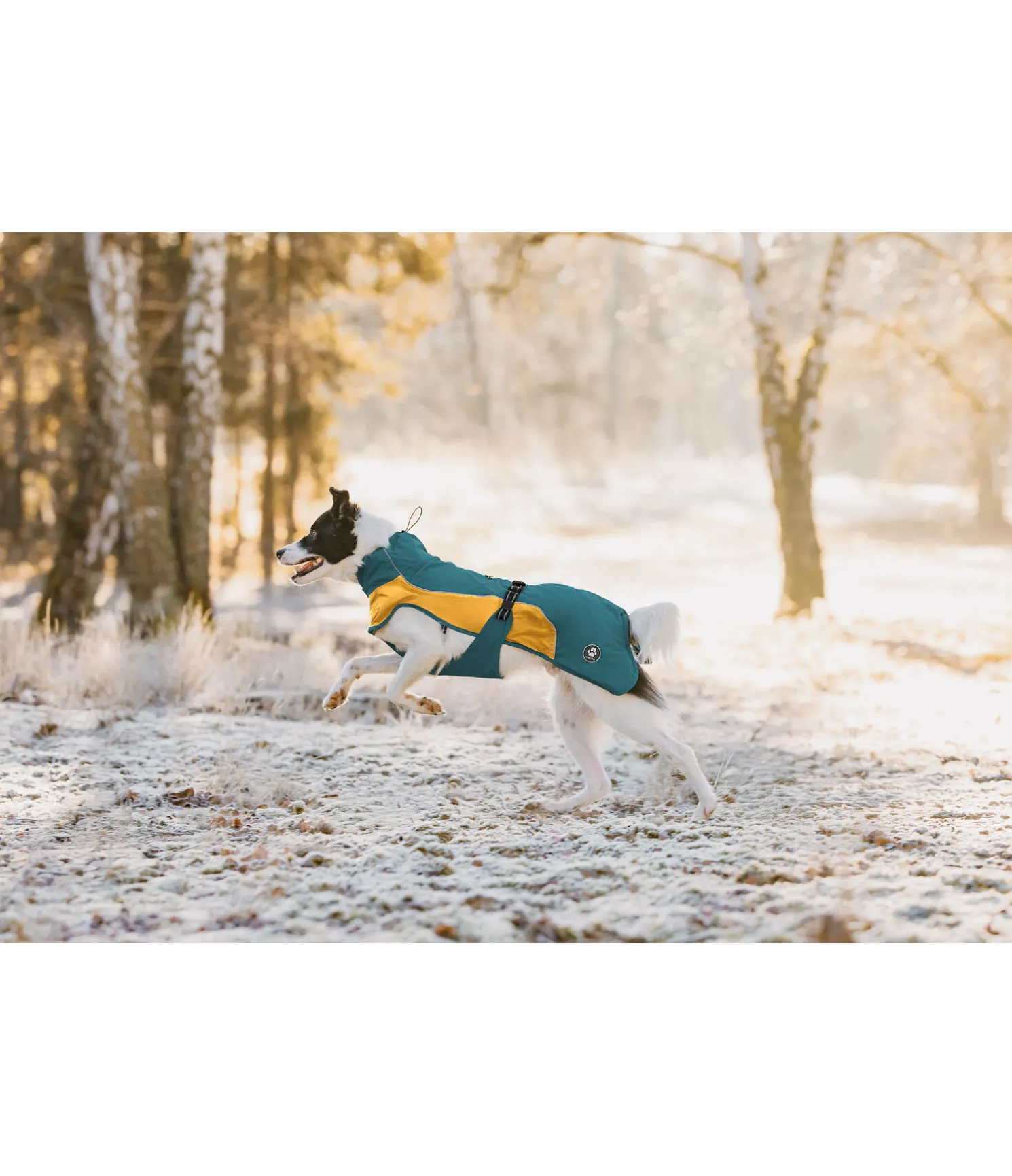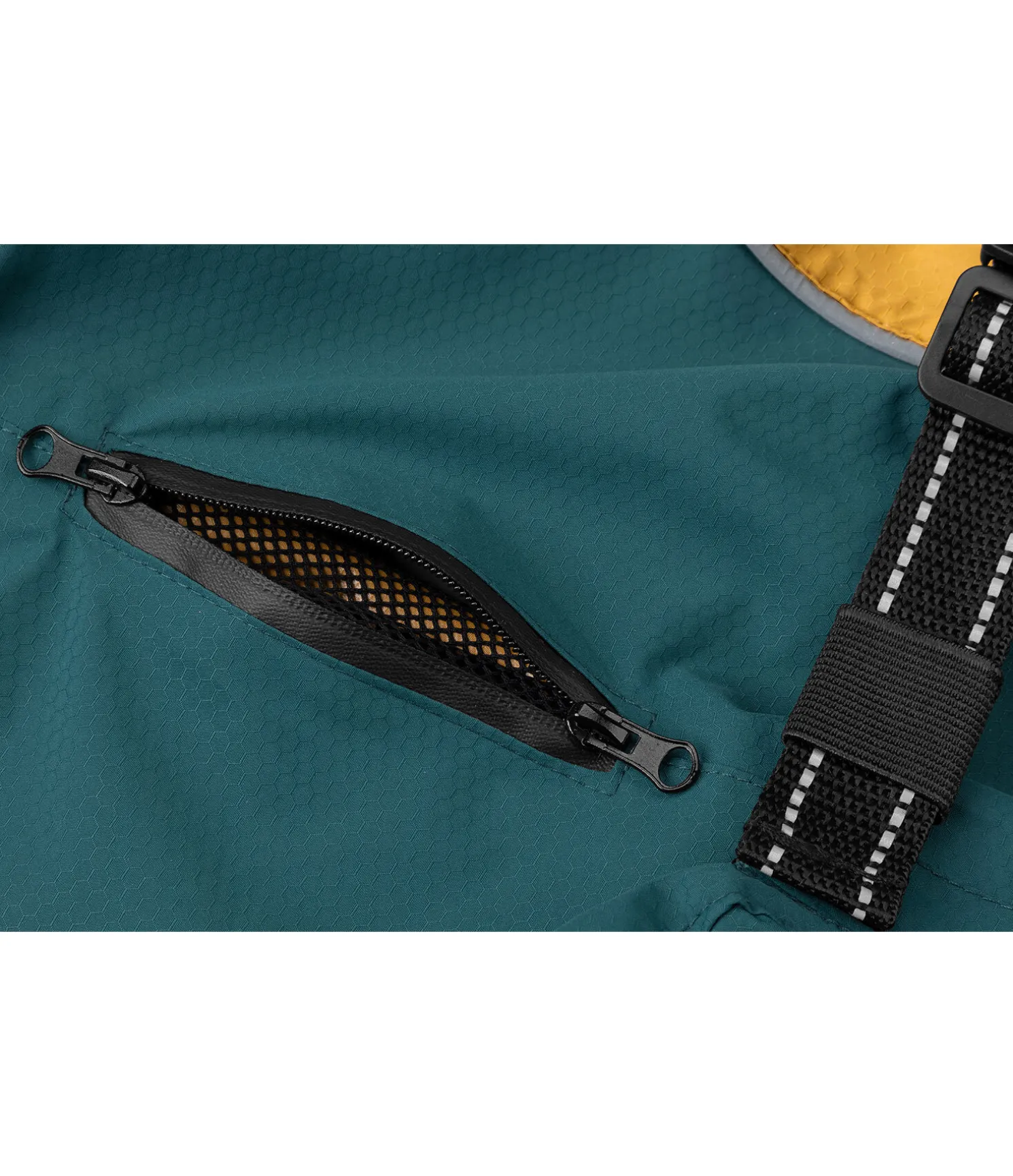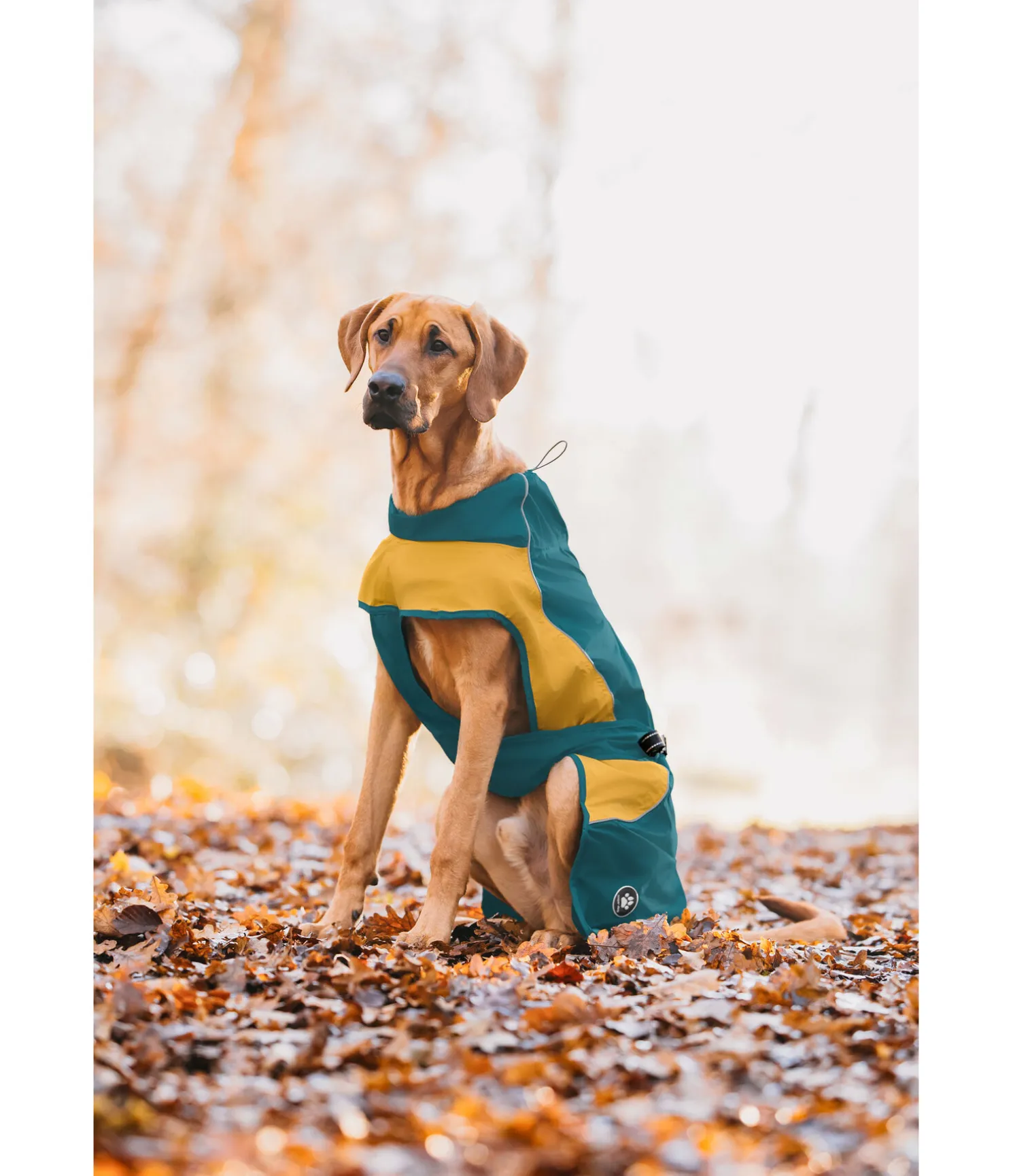 Notre modèle de manteau de pluie le plus léger (imperméabilité 3.000 m, respirabilité 3.000 g/m2/24h, coutures thermosoudées) idéal pour la mi-saison ou les orages estivaux ! Ce manteau bicolore dispose d’une doublure en mesh et de nombreux éléments réfléchissants tels que le badge logo. La coupe Highneck garantit une protection optimale et le cordon de serrage facilite le réglage. Sangle ventrale avec fermeture à clip sécurisée et réglable sans palier pour un ajustement optimal à la morphologie du chien. Courte fermeture à glissière imperméable dans le dos pour fixer la laisse au harnais. Le manteau dispose aussi de courroies de cuisse pour empêcher le manteau de se soulever ou de glisser. 100 % polyester.
