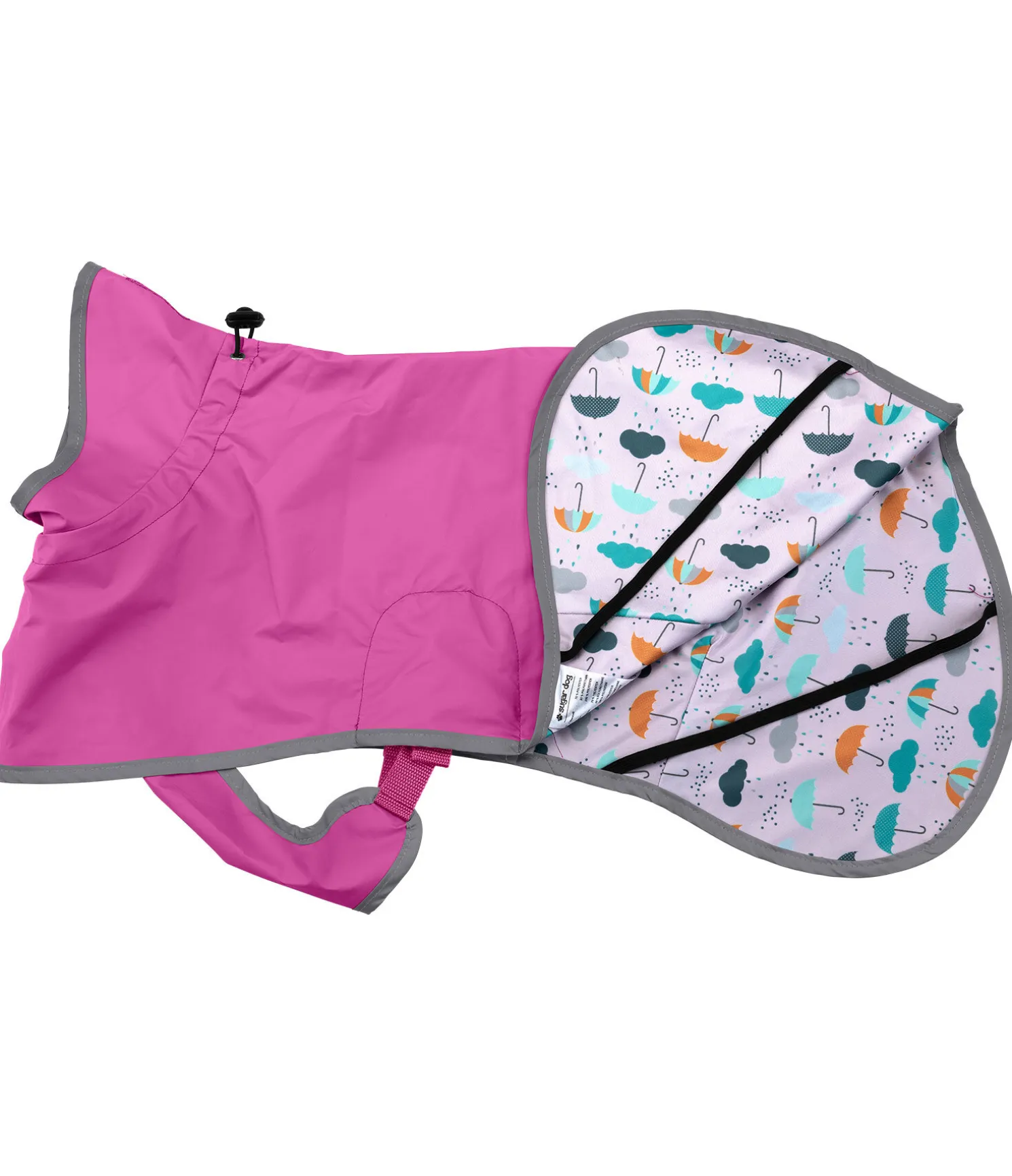 Idéal pour la mi-saison et les journées pluvieuses ! Manteau ultra léger, imperméable et coupe-vent (coutures thermosoudées). Éléments réfléchissants pour plus de sécurité dans l’obscurité. Doublure intérieure respectueuse du poil avec imprimé parapluie all-over. Coupe évasée plus longue au niveau des pattes arrière et col montant élastiqué pour protéger efficacement le chien contre la pluie sans entraver ses mouvements. Deux fermetures à clip latérales réglables dissimulées. Pas de sangle ventrale. Passage pour fixer la laisse au collier. Petite fermeture à glissière étanche à double sens pour fixer la laisser au harnais. Courroies de cuisses élastiquées pour les pattes afin de maintenir le manteau lorsque le chien est en mouvement. Matière extérieure 70 % polyester, 30 % polyuréthane ; doublure intérieure 100 % polyester.