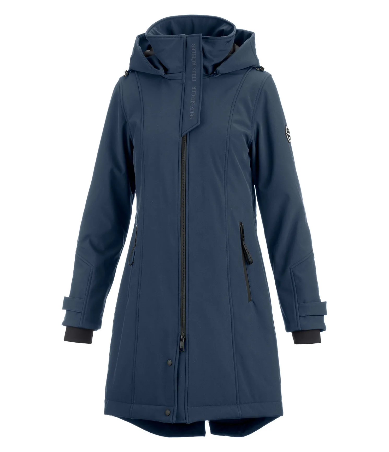Manteau softshell déperlant et coupe-vent. Col montant avec capuche doublée en jersey, amovible et réglable. Bouton-pression pour fixer la capuche dans le dos. Fermeture à glissière double sens étanche. 2 poches avant zippées. Bas des manches ajustable, élastiqué et coupe-vent. Taille réglable. 1 fente cavalière zippée à l’arrière. Doublure matelassée imitation duvet. 1 poche intérieure zippée. Badge sur la manche et imprimé Felix Bühler sur le col. 94 % polyester, 6 % élasthanne.
