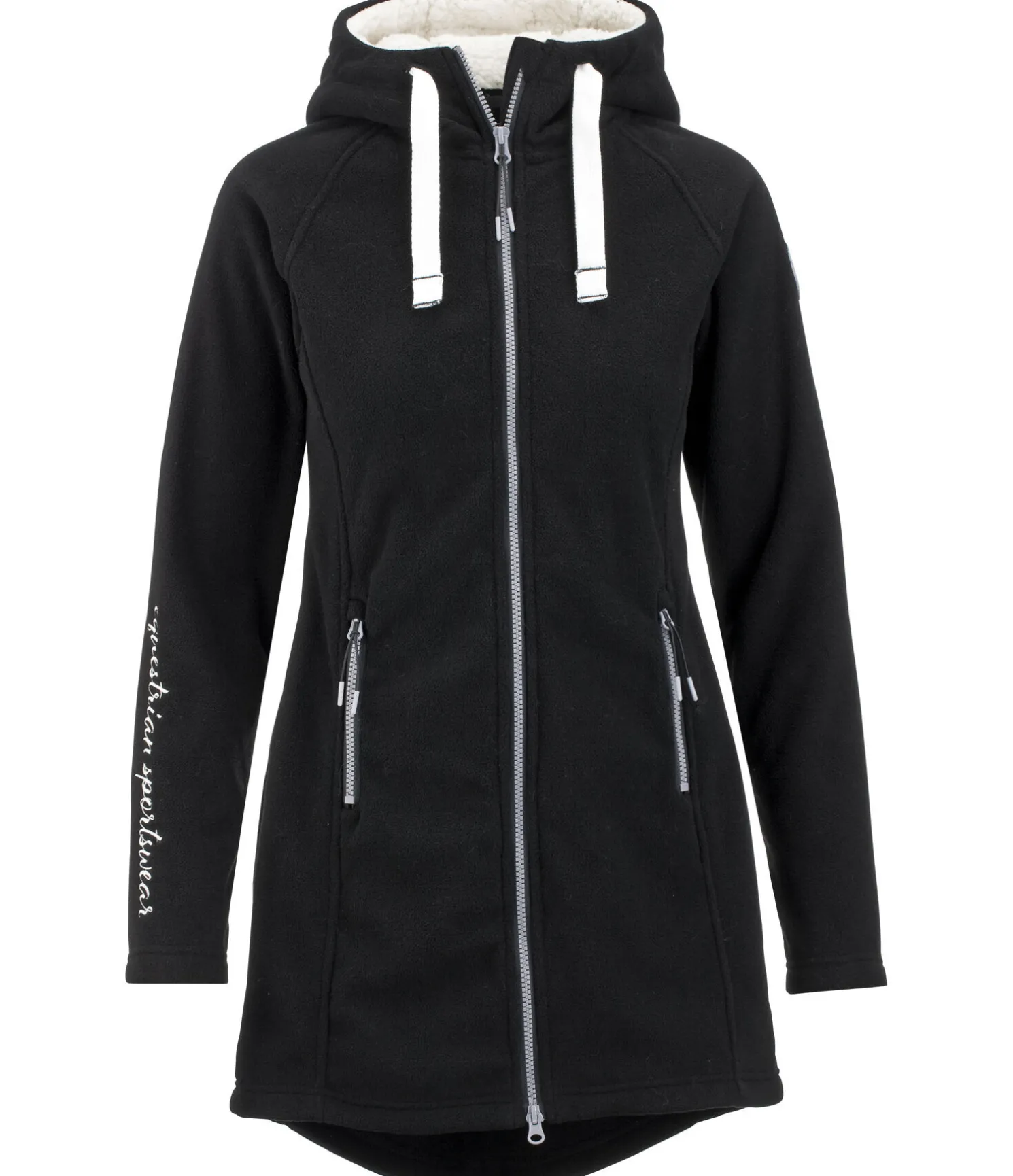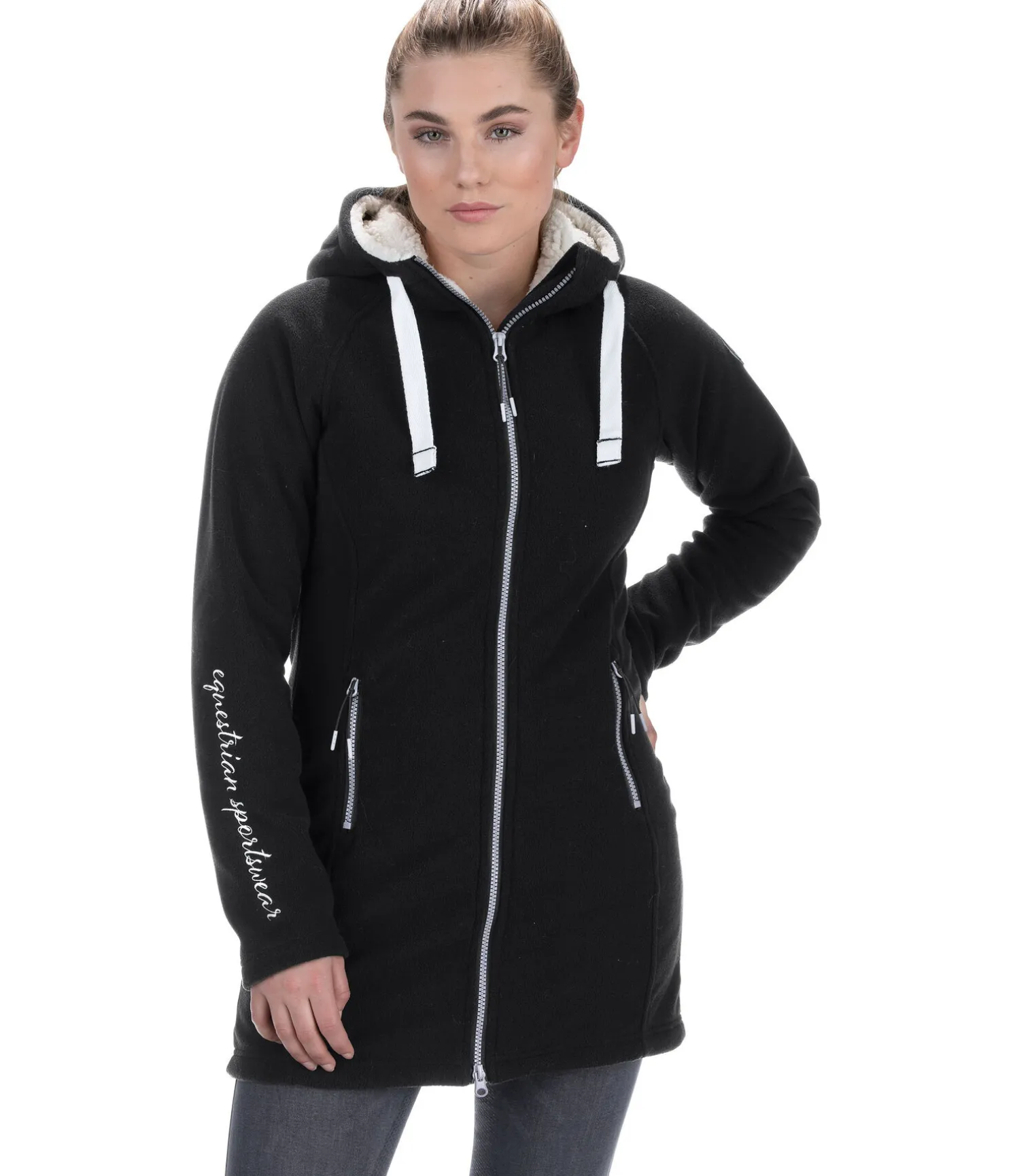Manteau chaud en polaire agréable à porter. Capuche réglable doublée en fourrure Teddy douce. Fermeture à glissière double sens avec sous-patte. Deux poches zippées latérales. Badge STEEDS et broderie sur la manche. 100 % polyester.