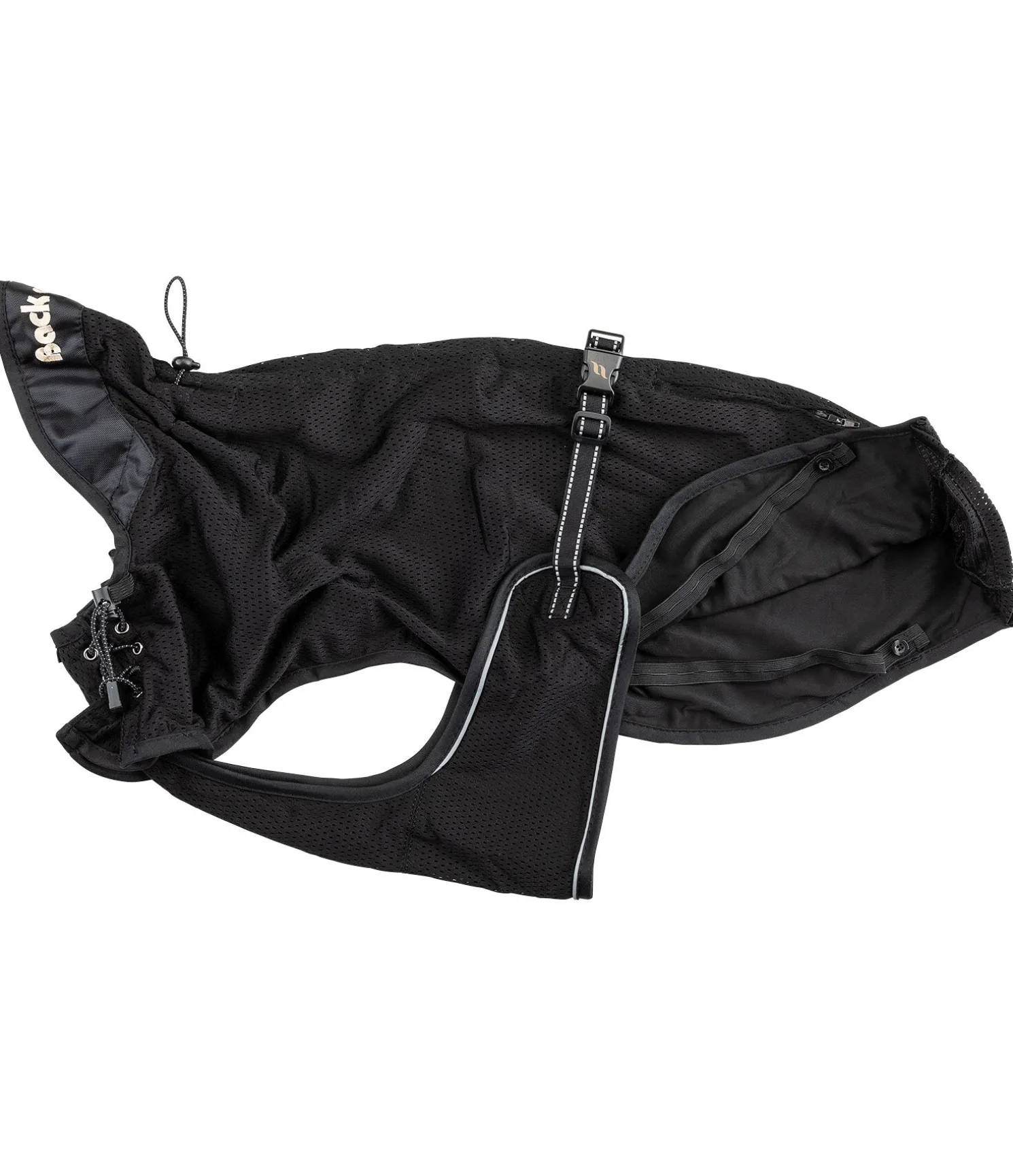 Manteau pour chien respirant avec technologie Welltex®. La couche extérieure en mesh permet une circulation libre de l’air. Réglable au niveau du col, de la poitrine et du ventre. Doublure 100 % polypropylène, mesh externe 100% polyester.