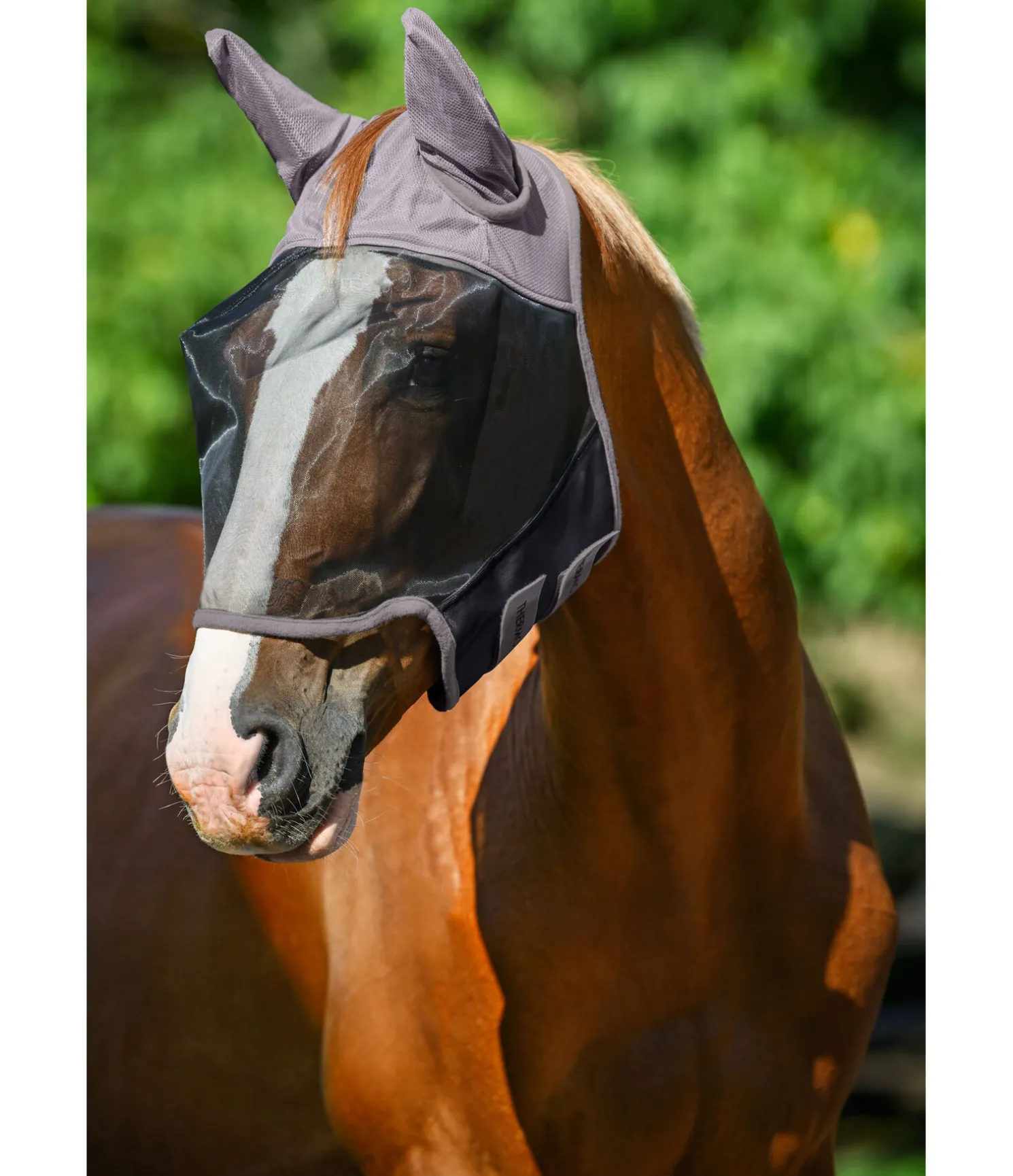 Masque anti-mouches avec grand filet protecteur éloigné des yeux et du chanfrein grâce à des coutures innovantes. Matière en mailles respirantes aux oreilles et front. Bordures douces en polaire pour éviter les irritations dues aux frottements. Fermeture par 2 pattes auto-agrippantes pour un ajustement optimal. 100 % polyester.