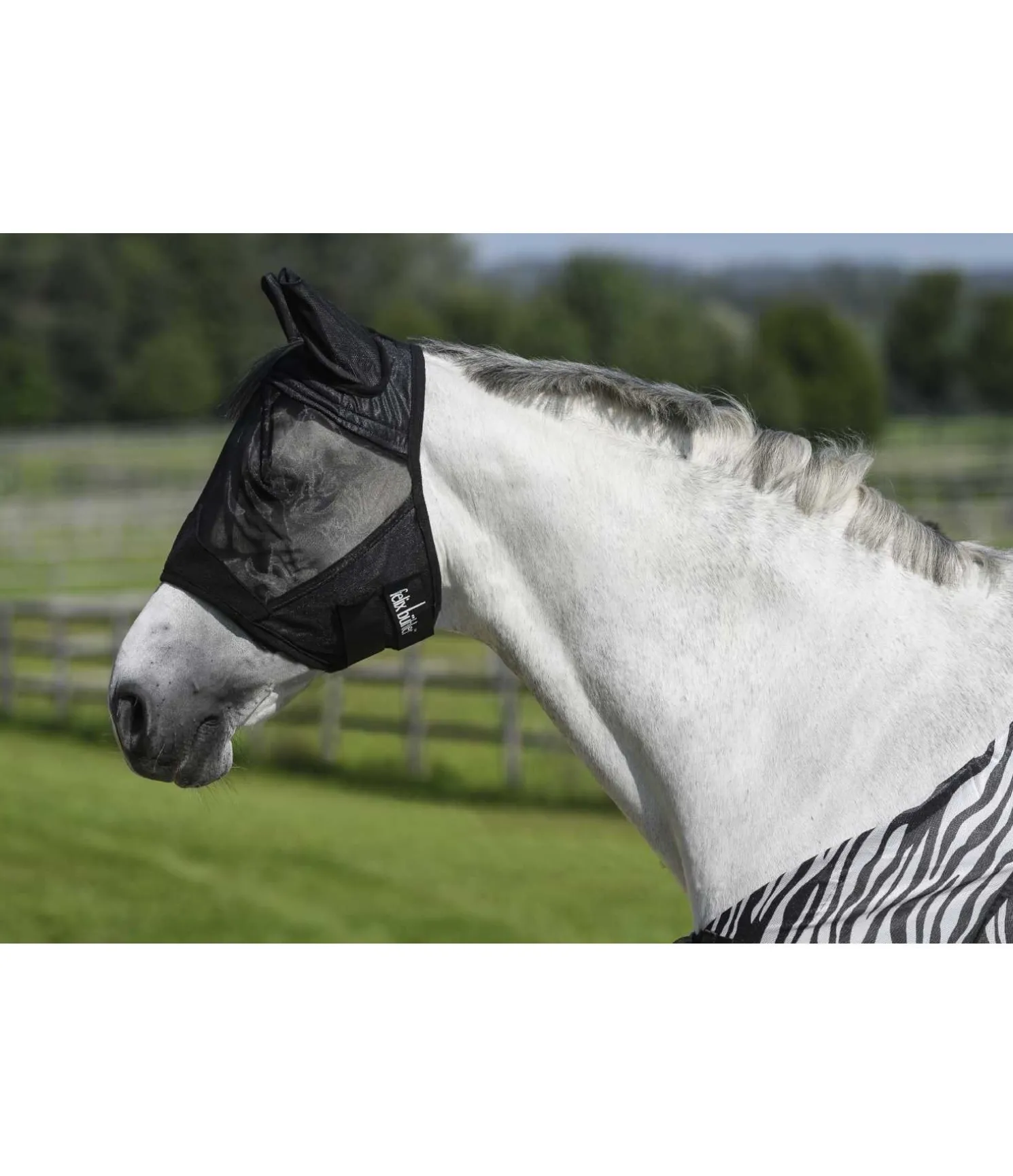 Masque anti-mouches classique pour chevaux sensibles. Filet particulièrement résistant à maille serrée Ripstop avec coutures renforcées. Bloque au moins 60 % des rayons UV tout en offrant une bonne visibilité. Filet conçu dans une matière respirante pour protéger les oreilles. Protège parfaitement les oreilles et les yeux contre les moustiques et autres insectes. Doublure en tissu éponge absorbant au niveau du front pour un confort optimal et bordure en polaire autour du chanfrein pour éviter les irritations dues aux frottements, élastiqué autour de l’encolure pour un ajustement parfait. Avec passage de toupet et double patte auto-agrippante pour un maintien sûr. 100 % polyester.