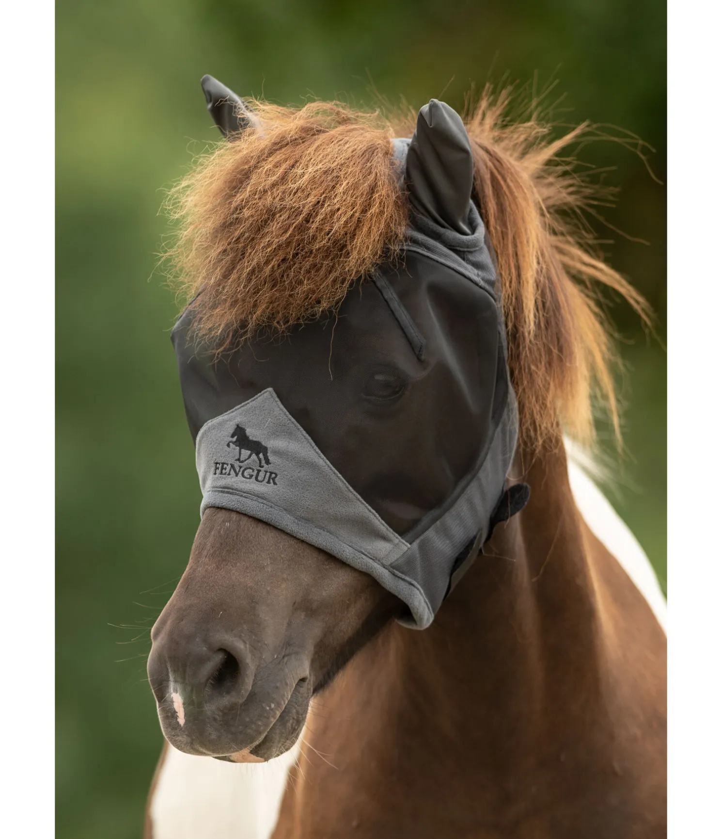 Masque anti-mouches fonctionnel spécialement conçu pour les chevaux islandais. Passage de toupet extra-large. Bordures avec doublure douce en polaire pour éviter les irritations dues aux frottements.