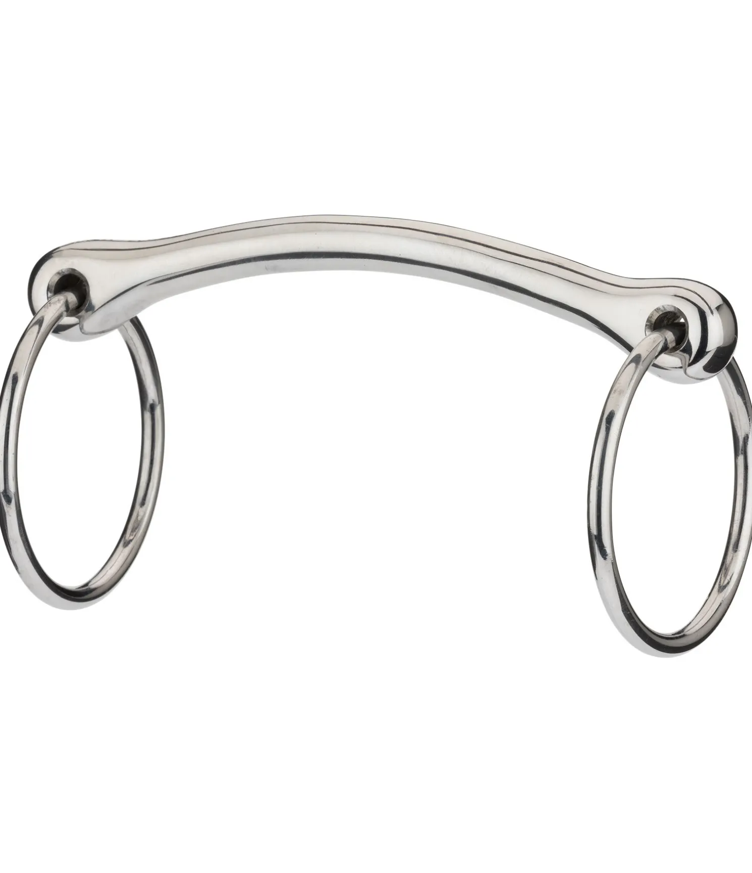 Mors droit à anneaux. Acier inoxydable. Épaisseur : 14 mm, diamètre des anneaux : 60 mm.