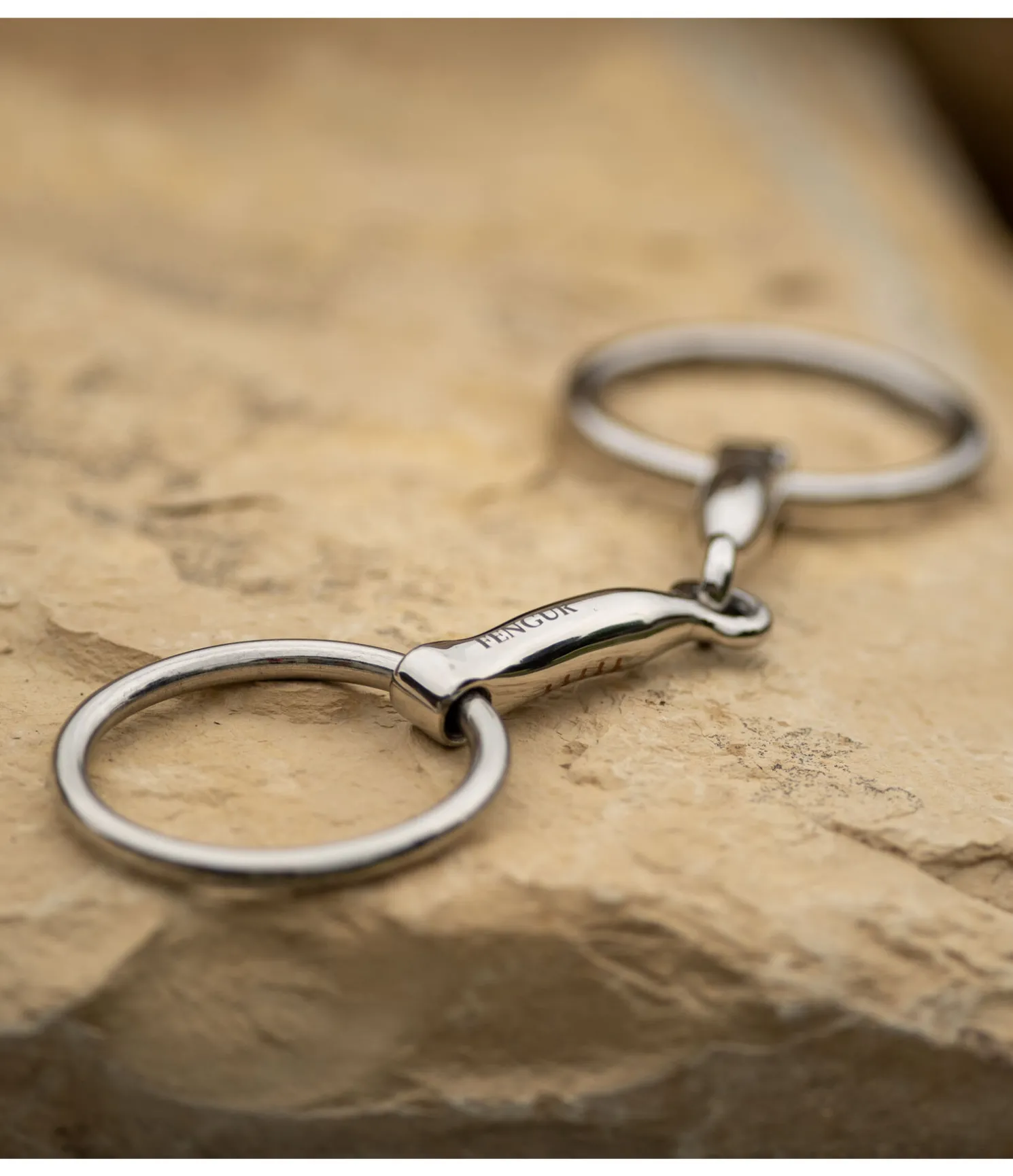 Mors simple brisure avec incrustations de cuivre en acier inoxydable. Les pièces de cuivre intégrées assurent une meilleure acceptation du mors par le cheval.