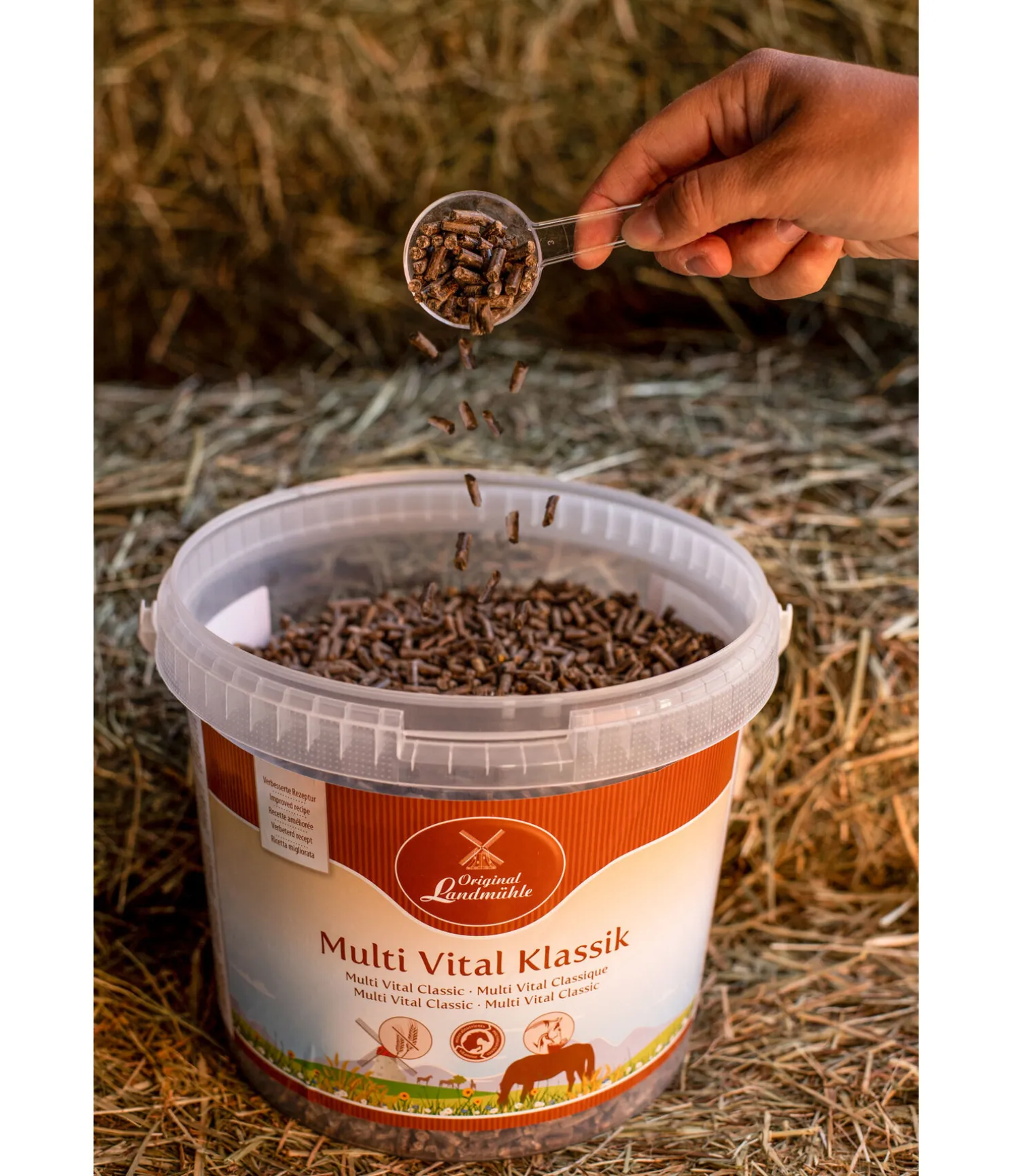 Recommandations de dosage : chevaux légers et poneys 50 g par jour, chevaux lourds 100 g par jour. Cet aliemnt complémentaire contient plus de vitamines et d’oligo-éléments qu’un aliment complet et ne doit être donné que aux chevaux et maximum 100 g par jour et par animal.