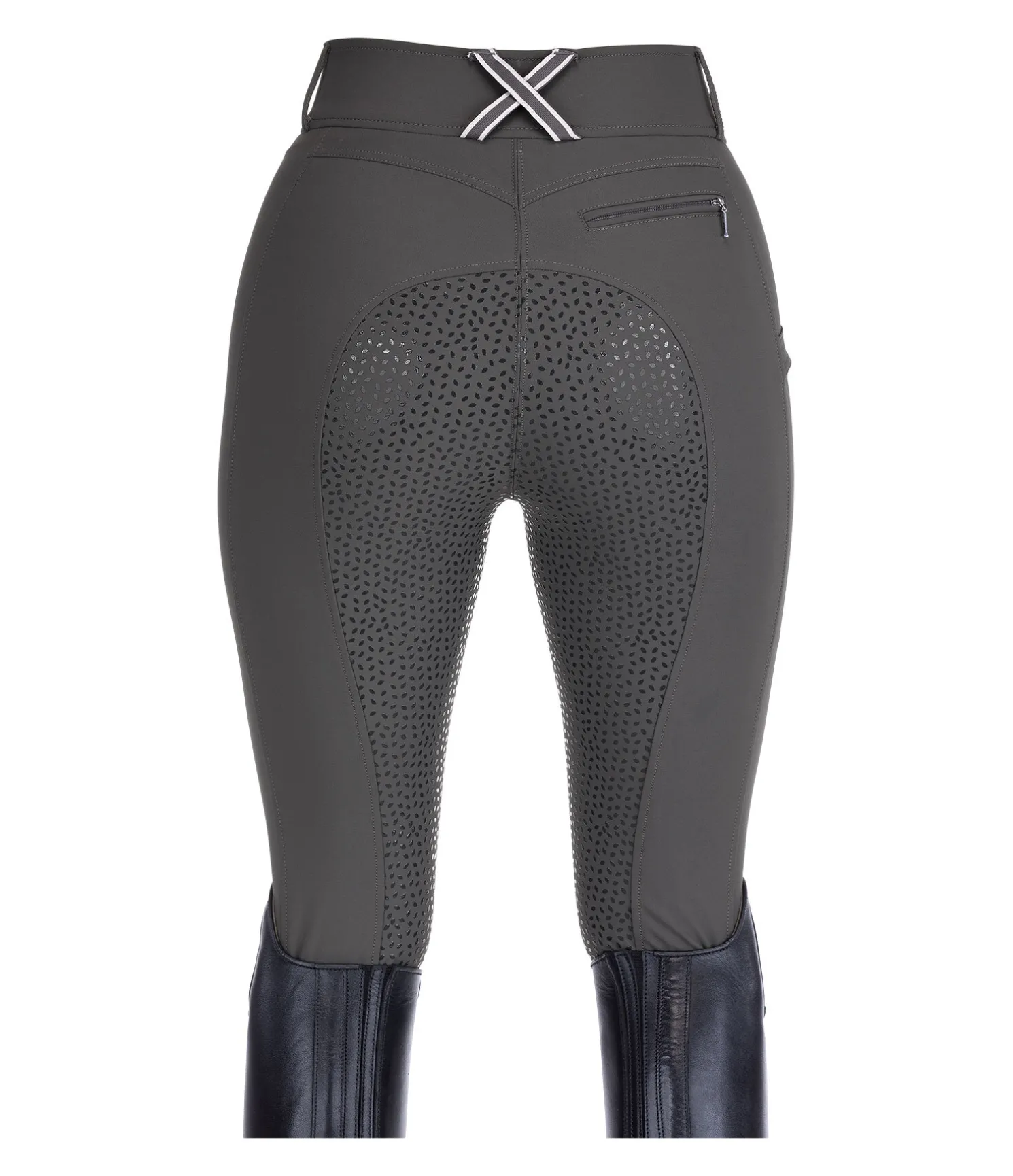 Pantalon d’équitation technique avec fond intégral grip en silicone. Matière déperlante, respirante à séchage rapide. Le tissu stretch offre un super confort et une assise parfaite. 1 poche arrière zippée, 1 poche pour téléphone portable sur la jambe. Ceinture élastiquée avec passants rayés de couleur contrastante. Aucune couture au niveau des genoux. Bas de jambe extensible en stretch. 89 % nylon,11 % élasthanne.