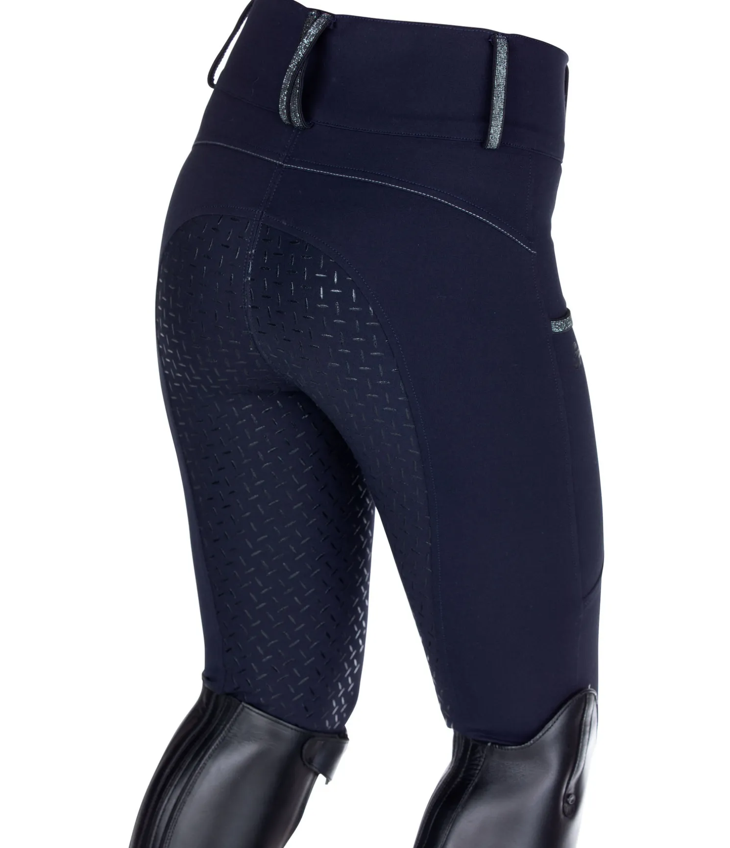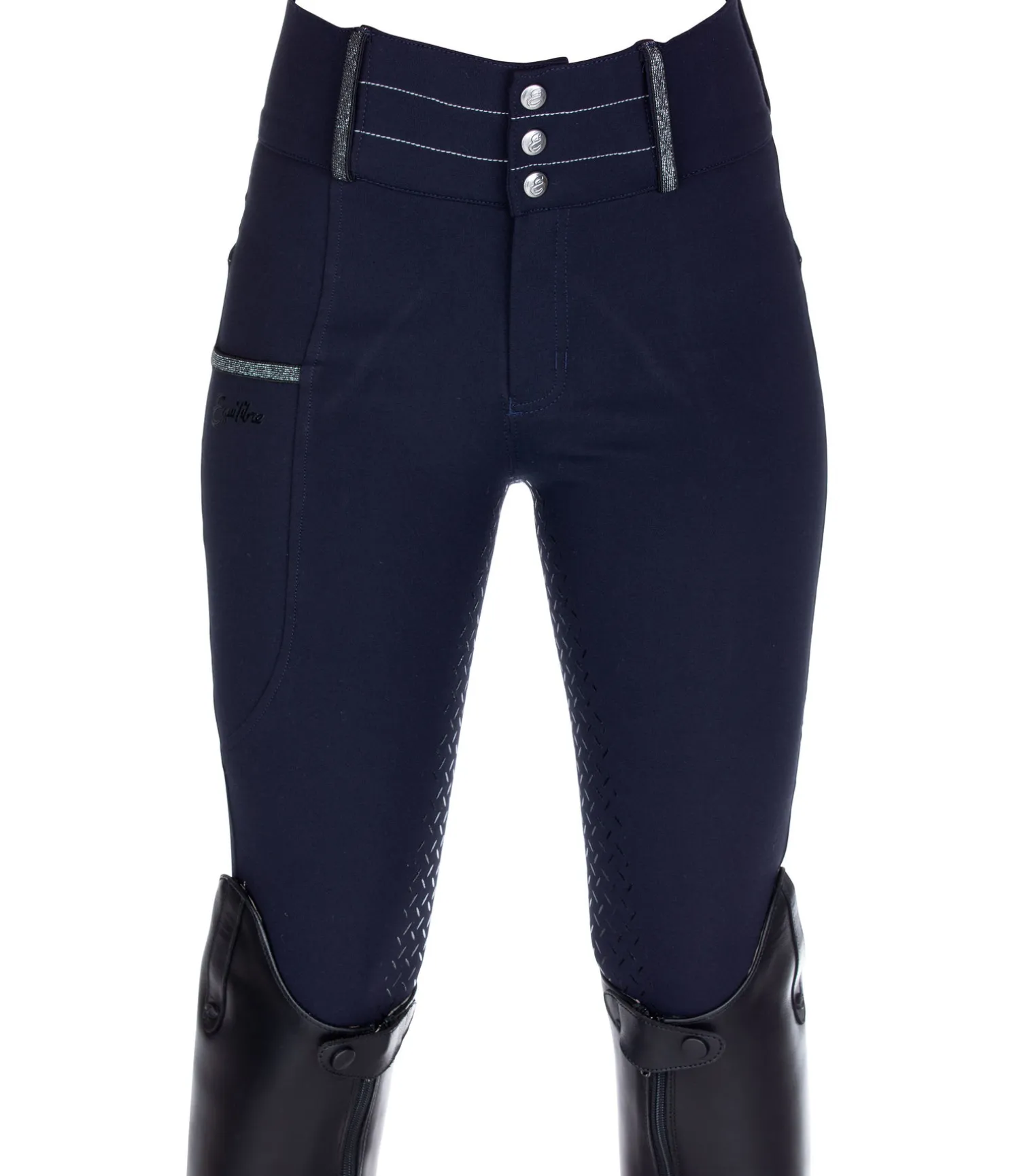 Pantalon d’équitation tendance à fond intégral en silicone. Détails scintillants : coutures, rubans aux poches et passants de ceinture. Matière stretch haut de gamme, respirante et extensible dans 4 directions. Taille haute. Poche latérale pour téléphone portable. Bas de jambe extensibles sans patte auto-agrippante. 68 % viscose, 27 % polyamide, 5 % élasthanne.