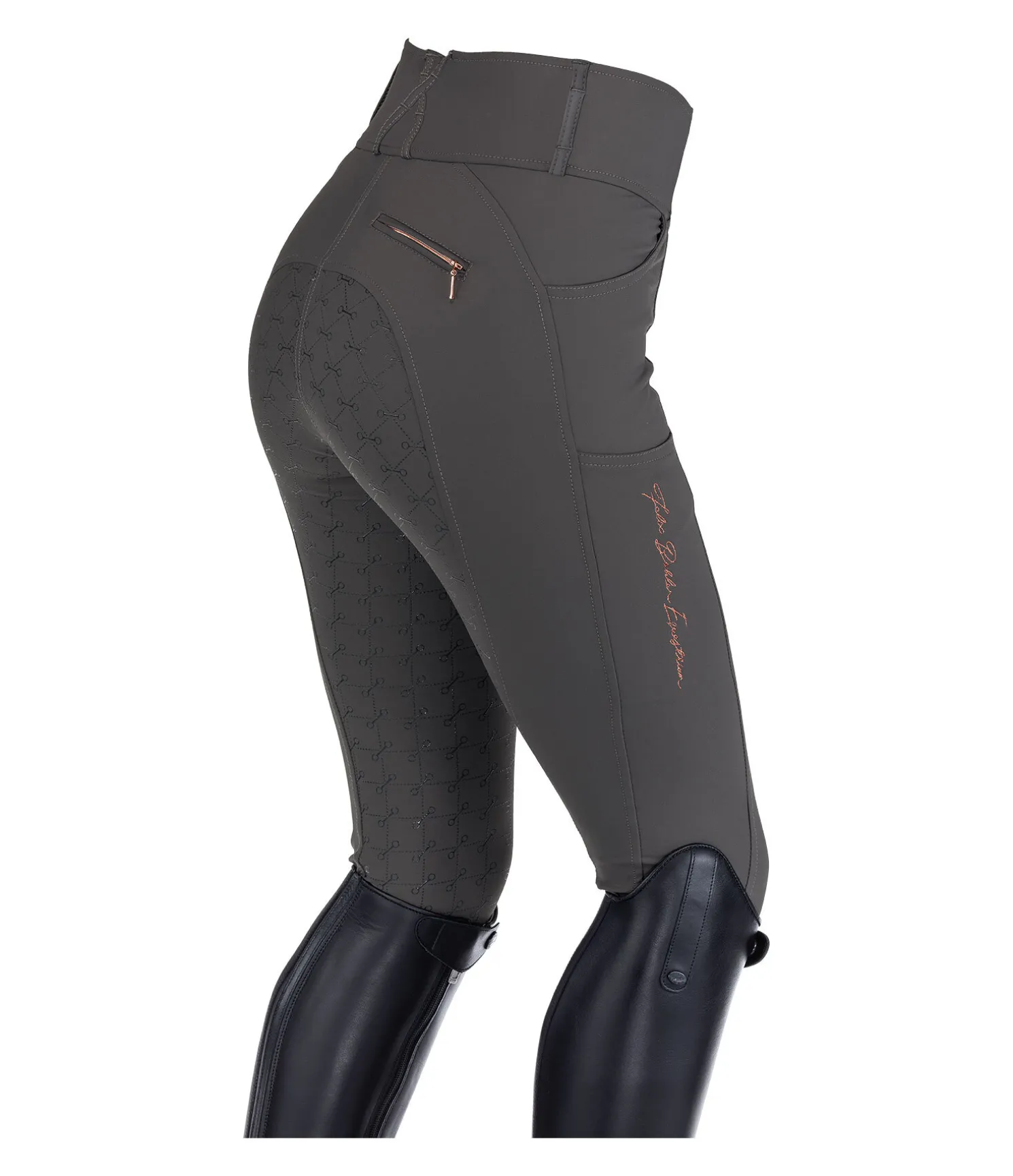 Pantalon d’équitation sportswear et extensible, à fond intégral grip en silicone avec motifs de mors. Matière déperlante, respirante et à séchage rapide. Broderie Felix Bühler sur la jambe. Poche arrière zippée et poche pour téléphone portable sur la cuisse. Deux poches avant. Ceinture à passants extra large élastiquée avec 2 boutons. Aucune couture aux genoux. Bas de jambe extensible en stretch. 89 % nylon, 11 % élasthanne.