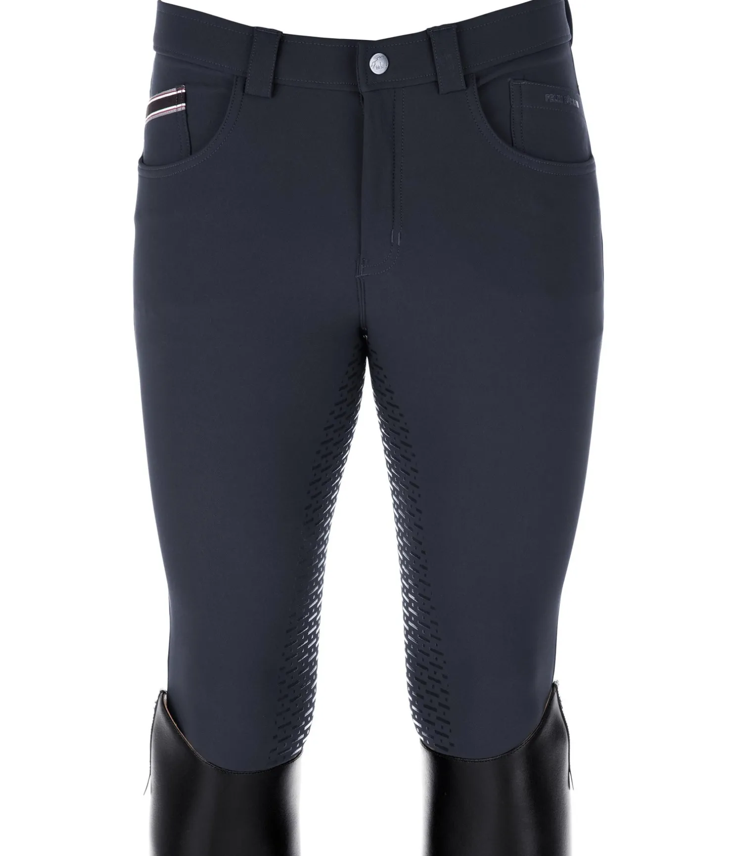 Pantalon d’équitation technique avec fond intégral grip en silicone pour un maintien optimal en selle. Bas de jambe extensible sans patte auto-agrippante. La matière est déperlante, respirante, extensible, résistante et facile d’entretien. Ceinture élastiquée, 2 poches avant et 2 poches arrière avec passepoil rayé ruban rayé à l’avant. Logo Felix Bühler. 93 % nylon, 7 % élasthanne.