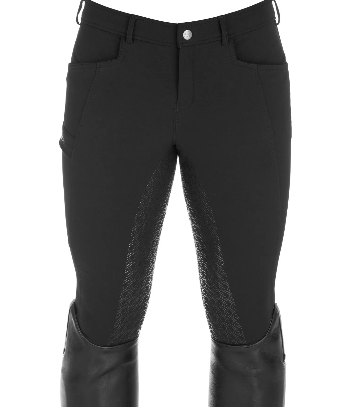 Pantalon d’équitation avec fond intégral grip en silicone pour un maintien en selle optimal. 2 poches avant, poche sur la cuisse pour le téléphone portable. Matière déperlant et respirante. 93 % polyester, 7 % élasthanne.