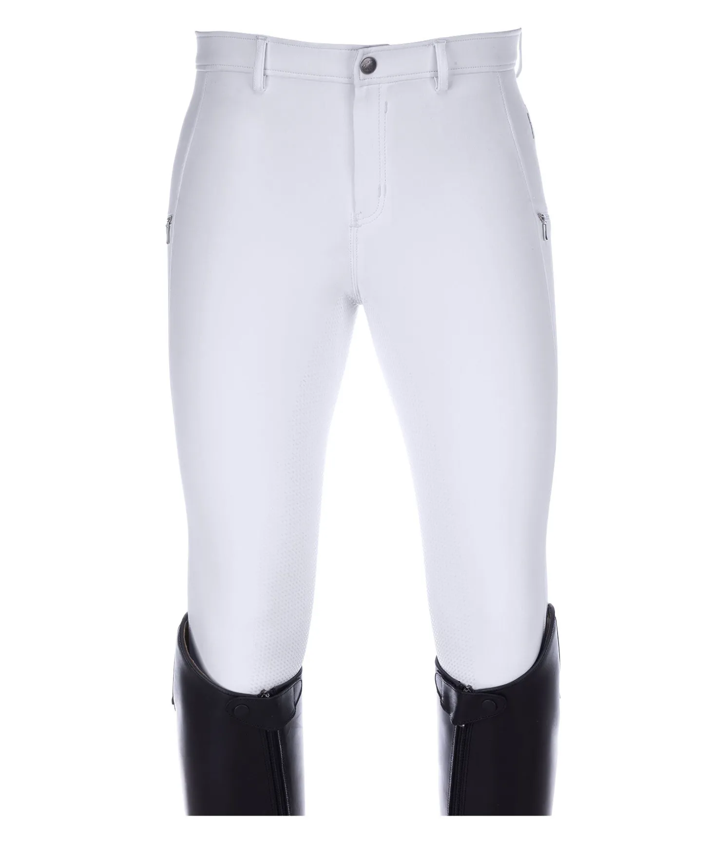 Pantalon d’équitation technique avec fond intégral grip en silicone. Matière déperlante et respirante. Ceinture élastiquée avec passants. Poche zippée latérale sur les deux jambes pour garder le téléphone portable en toute sécurité à cheval. Logo discret brodé à l’avant. Bas de jambe extensible sans patte auto-aggripante. Déperlant et respirant. 93% polyamide, 7% élasthanne.