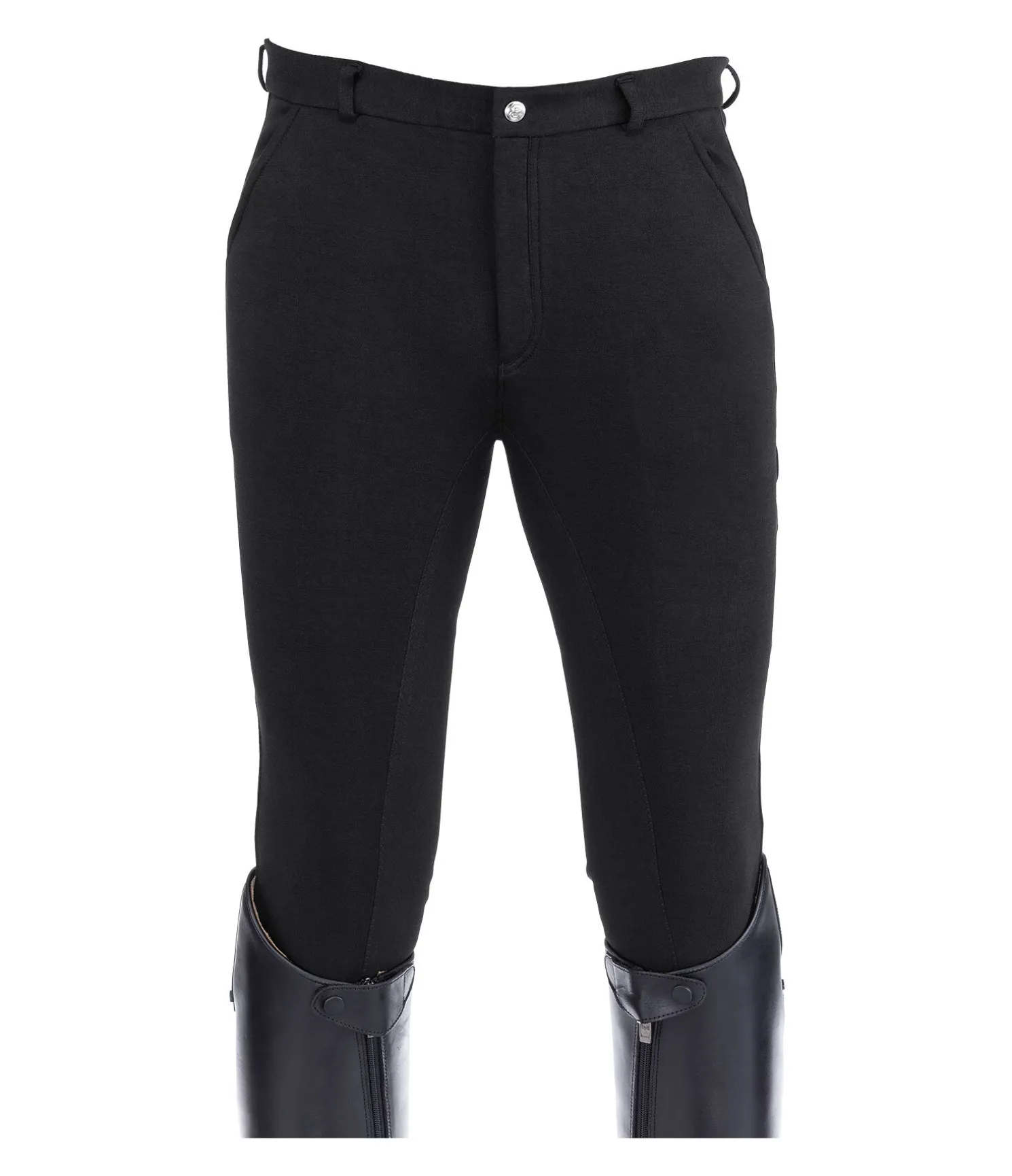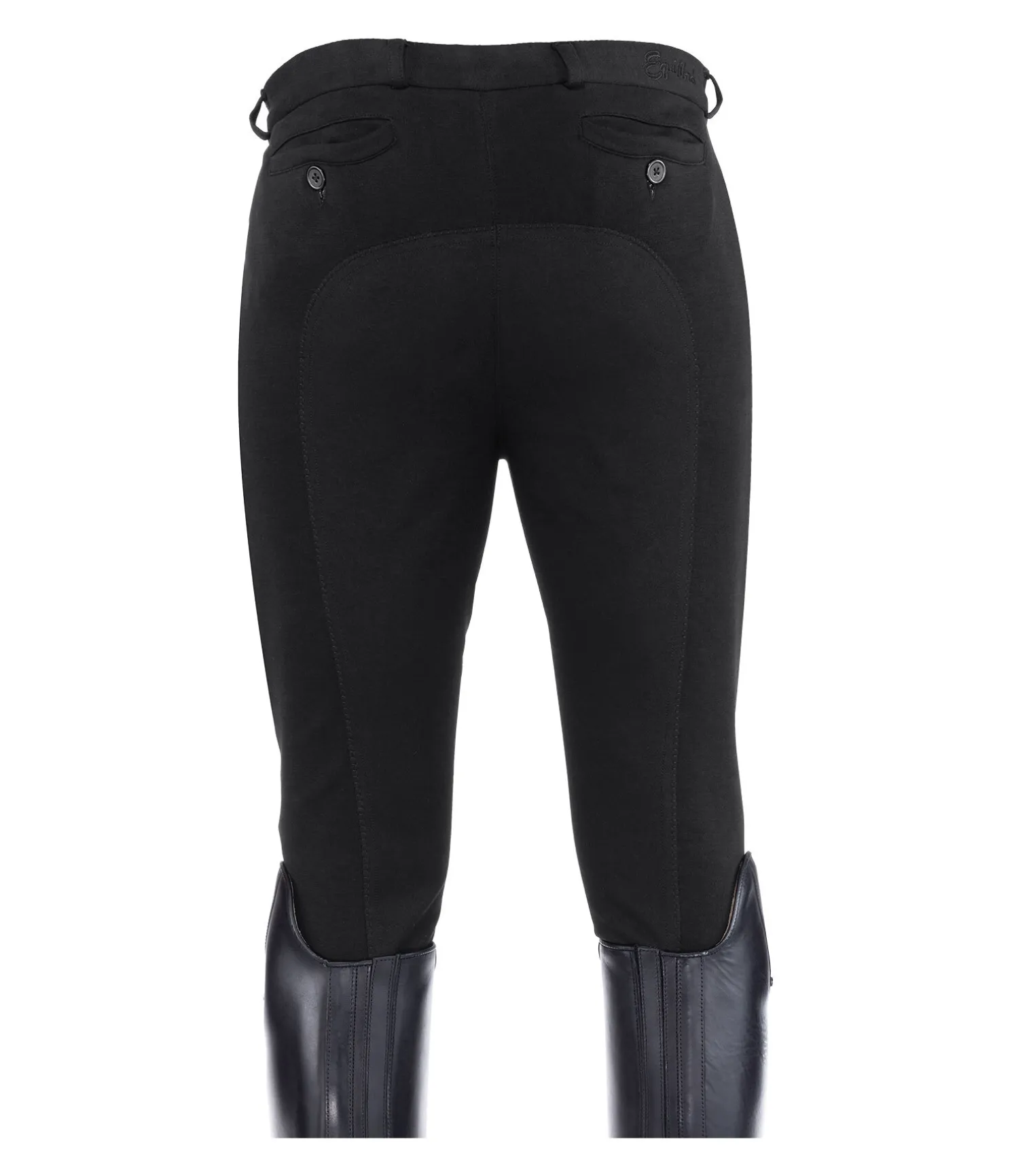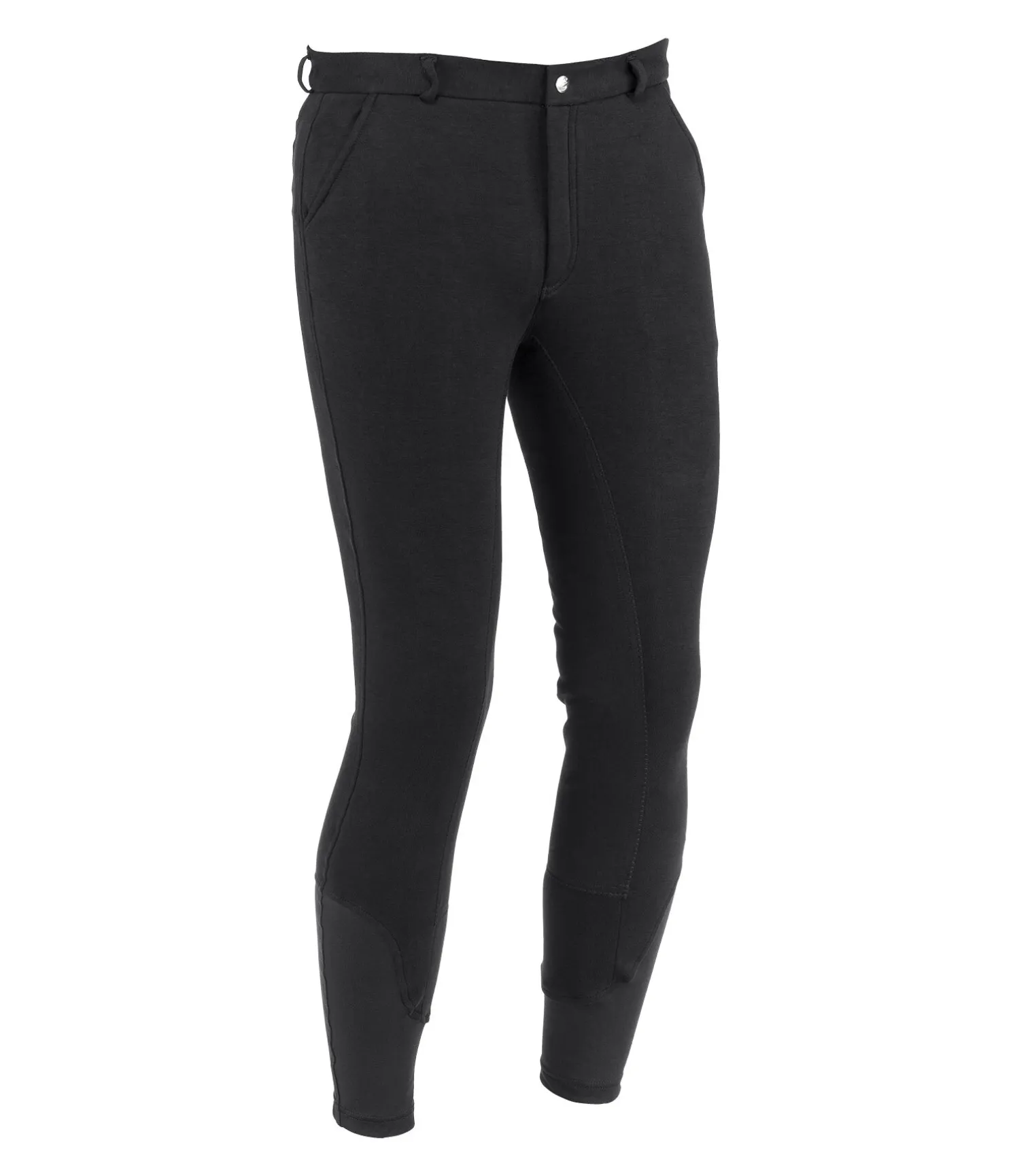 Pantalon d’équitation avec fond intégral en synthétique. Coupe classique. Ceinture élastiquée avec passants. Bas de jambe extensible. 2 poches avant et 2 poches arrière. 95 % coton, 5 % élasthanne.