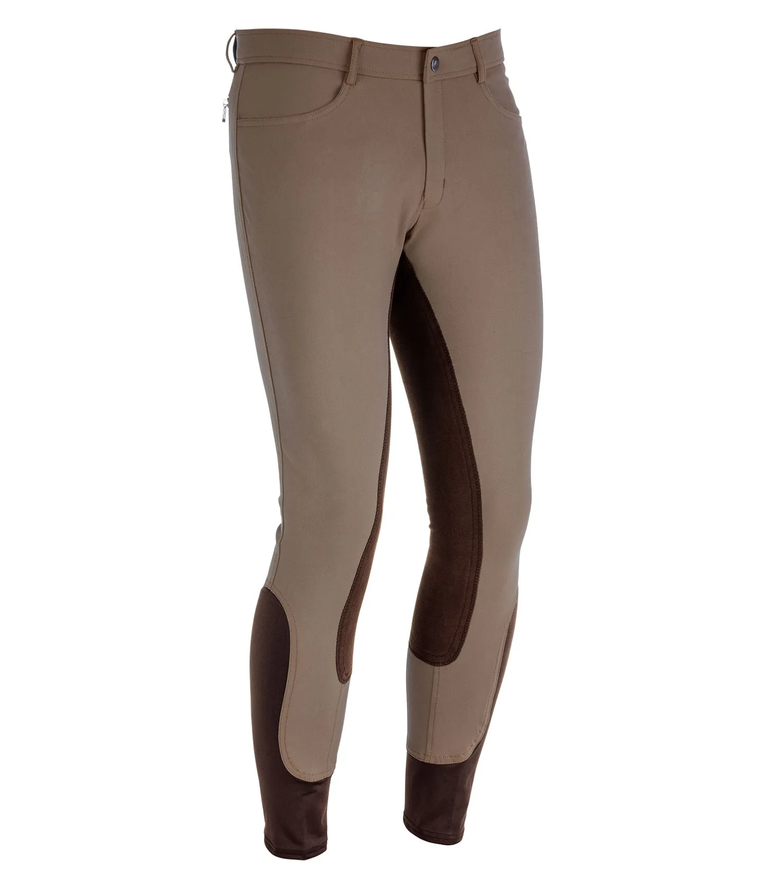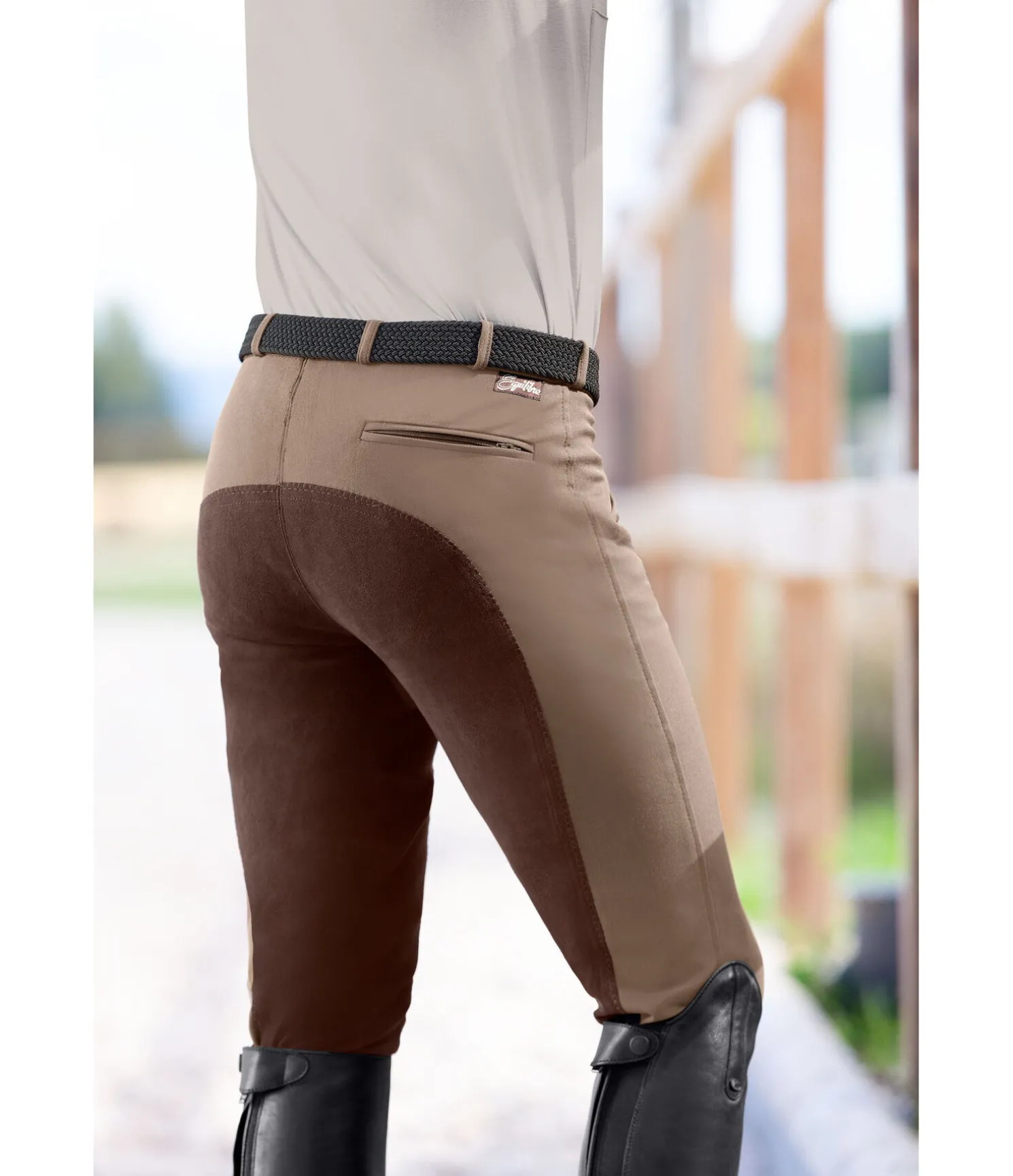 Pantalon d’équitation en microfibre avec fond intégral. Coupe classique tendance. Bas de jambe extensible sans patte auto-agrippante. Matière strech respirante pour une évacuation optimale de la transpiration. Résistant et facile d’entretien. 2 poches avant. 2 poches zippées arrière. 60 % coton, 32 % polyamide, 8 % élasthanne.