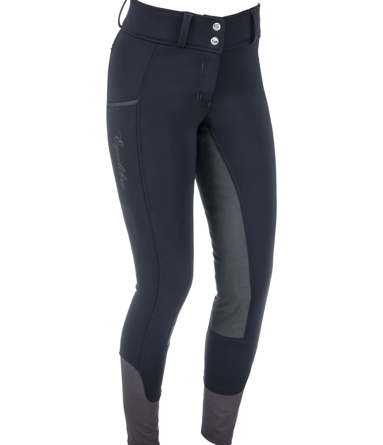 Pantalon d’équitation d’hiver coupe-vent et chaud. Fond intégral extensible en synthétique. Intérieur molletonné et doux. Bas de jambe extensible sans patte auto-agrippante. Large ceinture extensible. Une grande poche pour téléphone portable sur la cuisse et une poche arrière zippée. Matière extérieure 88 % nylon, 12 % élasthanne, doublure 100 % polyester.