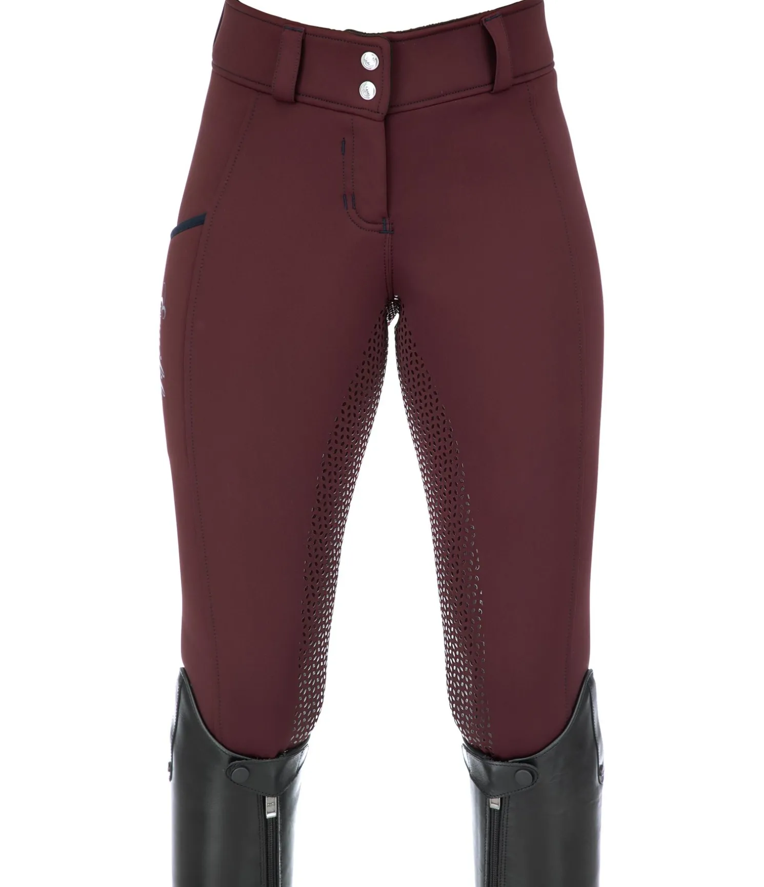 Legging d’équitation confortable avec fond intégral grip en silicone. Matière extensible lisse à l’extérieur et confortable à l’intérieur. Ceinture extra large élastiquée. Une poche zippée pour téléphone portable sur la cuisse. Bas de jambe extensible sans patte auto-agrippante. 86 % polyester, 14 % élasthanne.