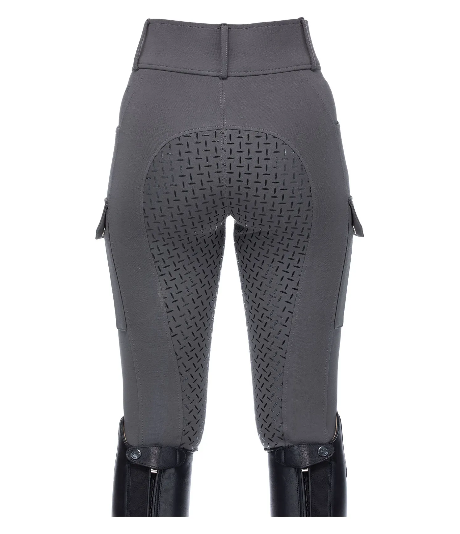 Pantalon d’équitation à fond intégral en silicone avec poches cargo. Imprimé holographique du logo sur une des poches et à l’arrière du pantalon. Matière stretch respirante et extensible dans 4 directions. 2 poches avant. Ceinture élastiquée avec passants. Bas de jambe extensible. 68 % viscose, 27 % nylon et 5 % élasthanne.