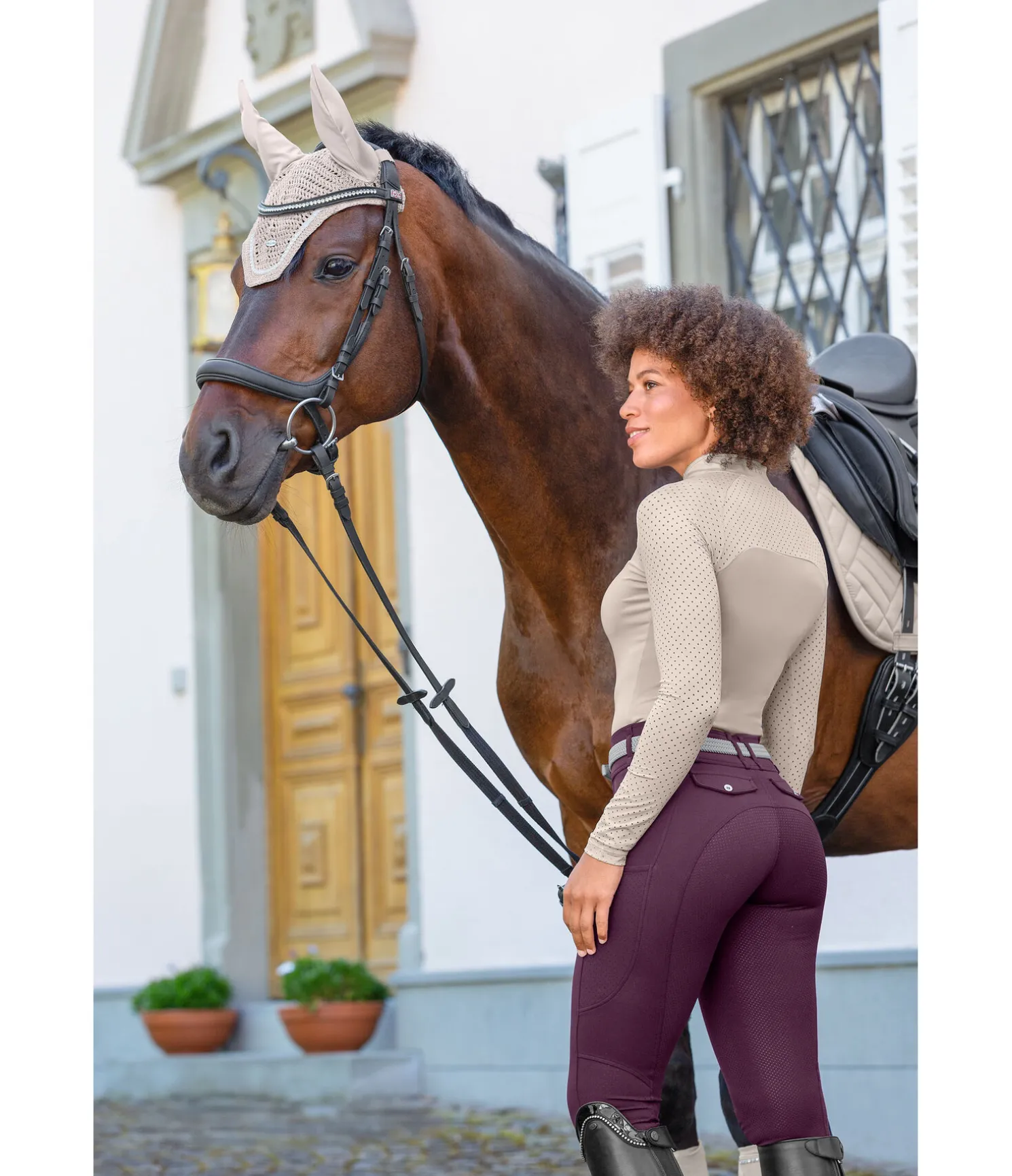Pantalon d’équitation d’été hybride à fond intégral grip Samira-Mesh