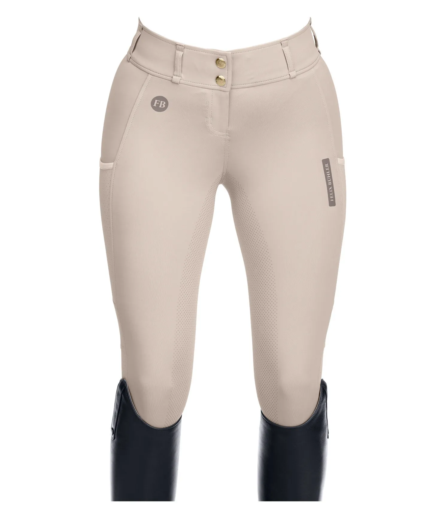 Pantalon d’équitation super confortable et léger à fond intégral grip en silicone. Stretch extensible dans 4 directions pour un effet sculptant garanti. Matière respirante à séchage rapide. Tissu très aéré grâce à la découpe laser sur les jambes. Large ceinture avec passants et deux boutons. Une poche pour téléphone portable sur chaque jambe. Deux fausses poches arrière. Aucune couture sur les genoux. Badges Felix Bühler. 78 % polyester, 22 % élasthanne.