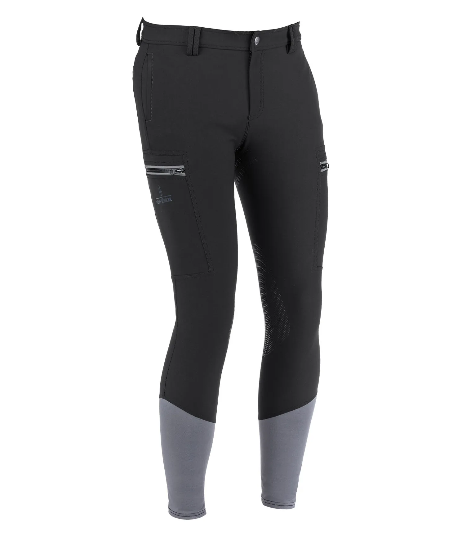 Pantalon d’équitation avec fond intégral grip siliconé. Matière extensible, déperlante, respirante à séchage rapide. 2 poches avant et 2 arrière. 1 poche plaquée et zippée pour téléphone portable sur chaque cuisse. Bas de jambe extensible. 93 % nylon, 7 % élasthanne.