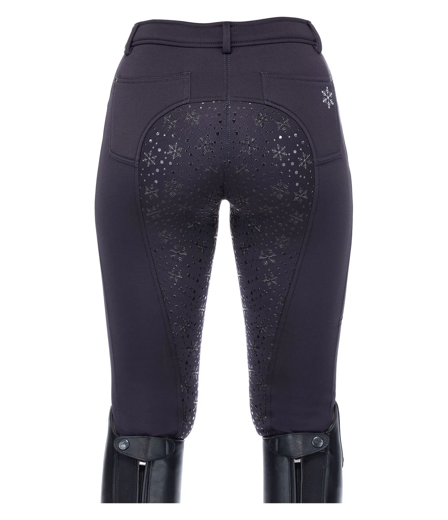 Pantalon d’équitation hiver chaud à fond intégral grip en silicone avec motif flocon de neige. Intérieur molletonné. Bas de jambe extensible. Matière stretch respirante et extensible dans 4 directions. 1 poche zippée sur la cuisse pour téléphone portable avec imprimé Equilibre, 2 poches avant et 2 poches arrière. Ceinture élastiquée avec passants. Joli flocon de neige imprimé sur la poche arrière. 60 % polyester, 33 % polyamide, 7 % élasthanne.